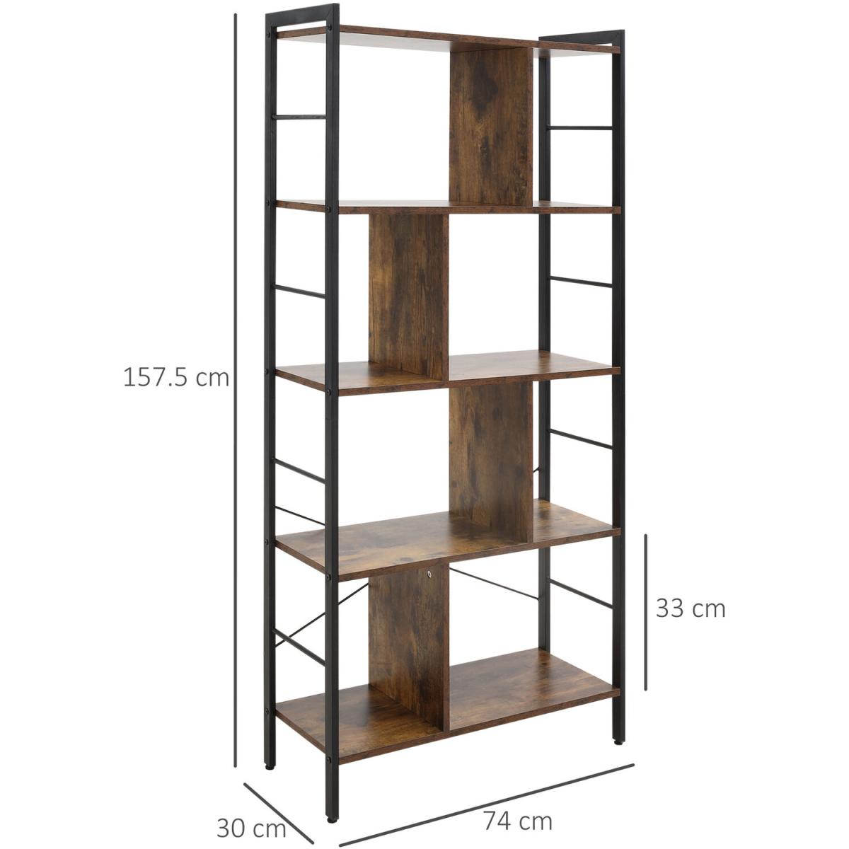 Storage Shelf Bookcase with Metal Frame - Rustic brown