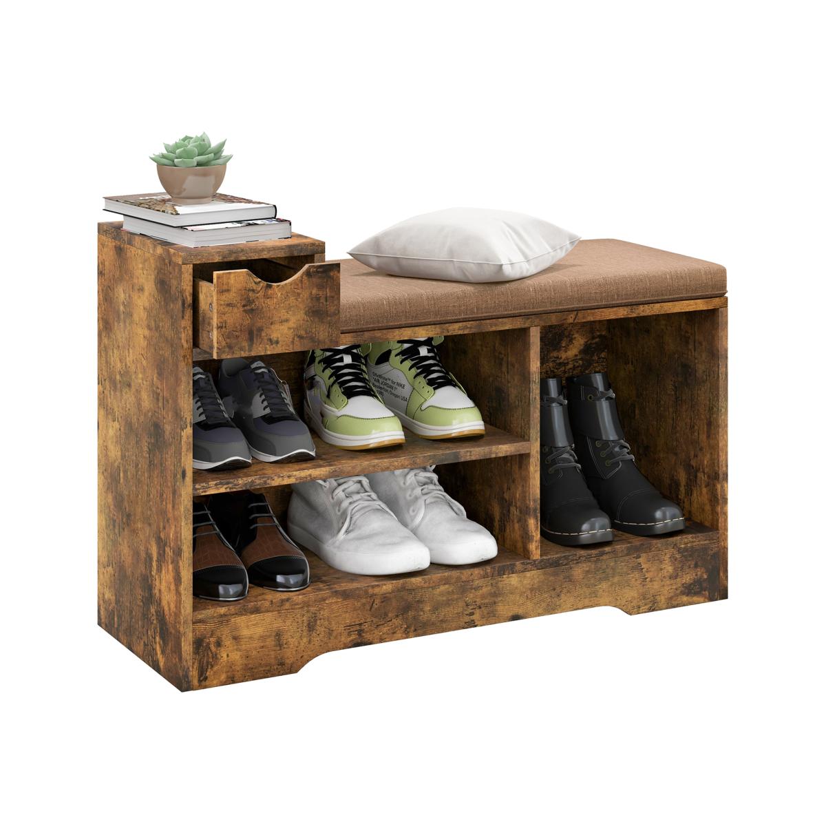 With simple color and stylish appearance, this shoe bench will match different room styles. It's great for your entryway, hallway, bedroom and living room. It has 2 open shelves, 1 drawer and 1 open cubby to store shoes and other daily items. Besides, the storage bench has a soft seat cushion for you or your family members to sit on to change shoes. When not in use, you can choose to remove the cushion and use the seat as an extra storage area. Made of durable and selected materials, this shoe bench with cushion is sure to offer you long-lasting lifespan.