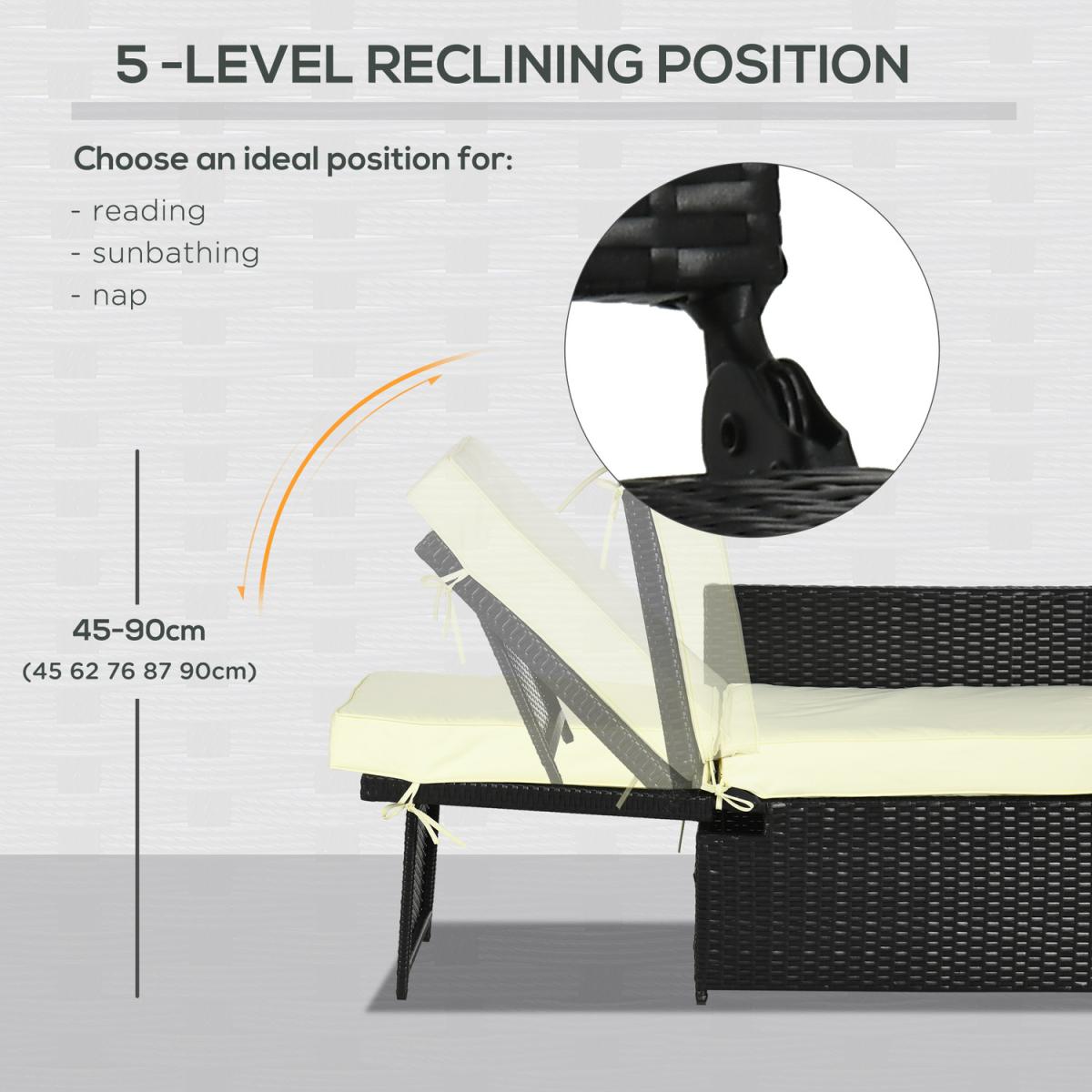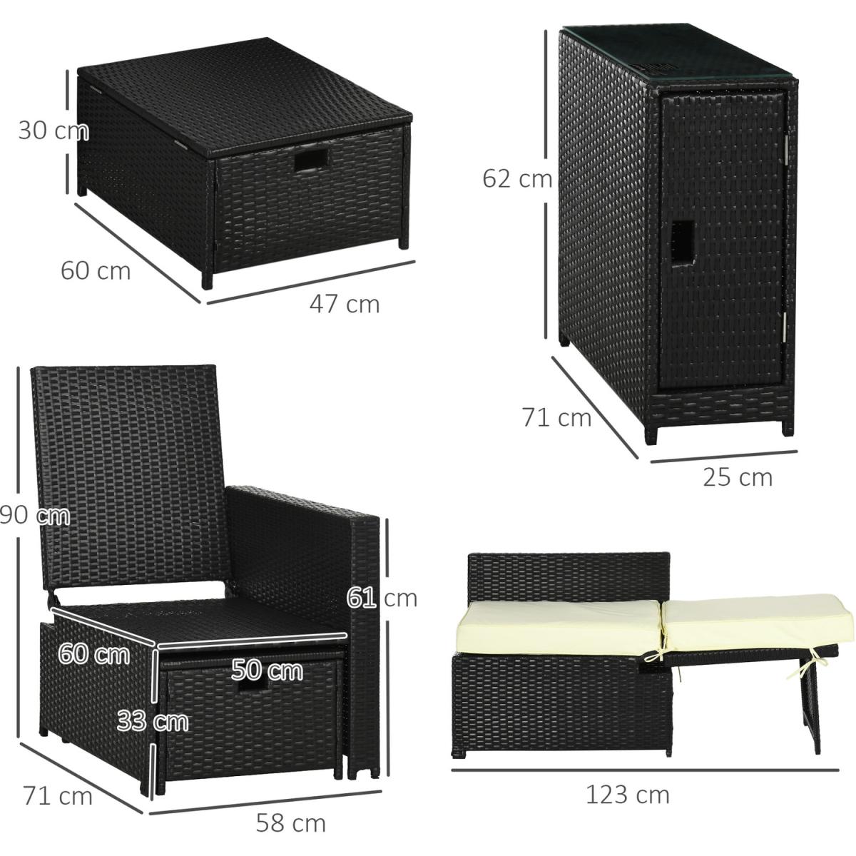 Storage Tea Table and Footstools Rattan Sun Lounger - Black