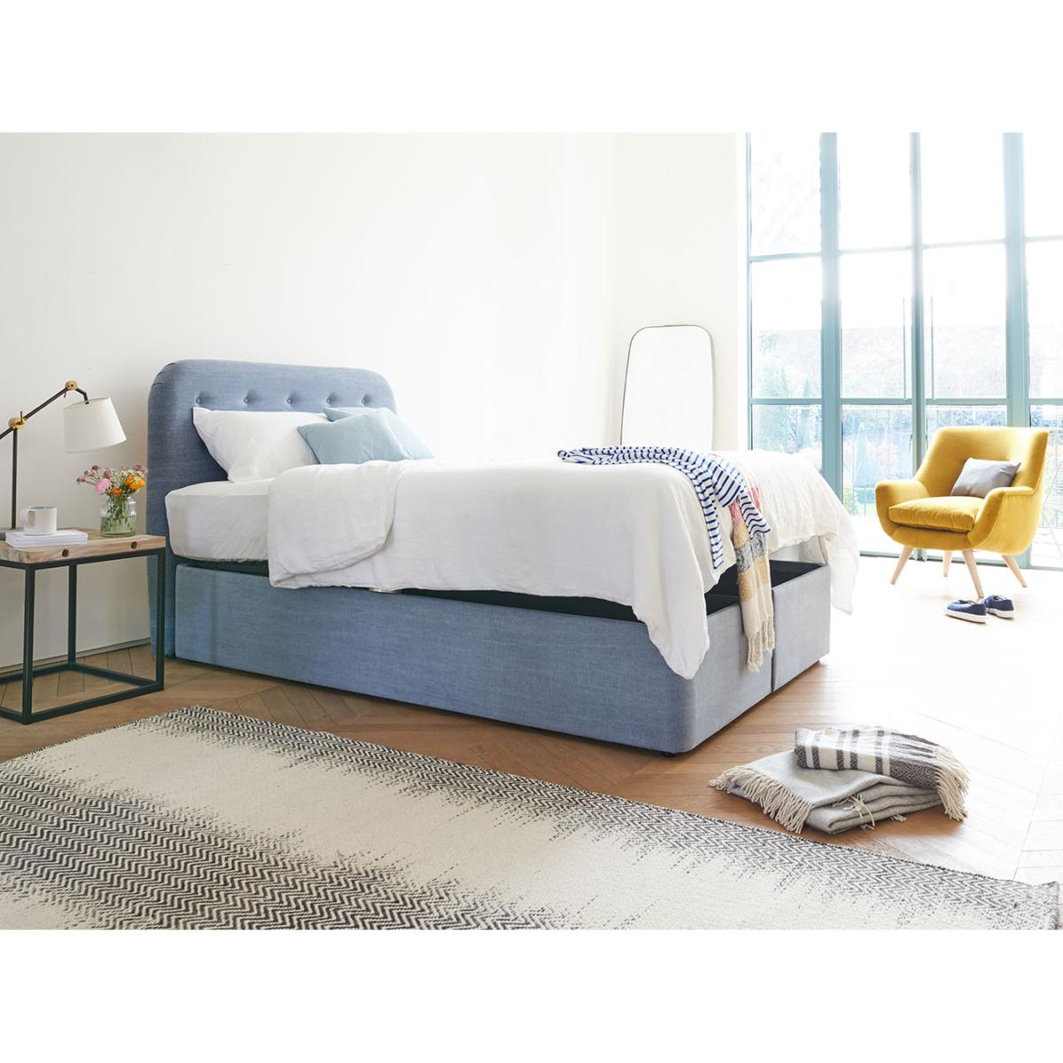 I love this storage bed for its sleek, minimalist design that works well in contemporary or Scandinavian-style interiors, but it can also bring a touch of relaxed elegance to more eclectic schemes. Its neutral upholstery makes it versatile for layering with textured throws, patterned cushions, or colourful bedding. Practical styling tips include keeping the bed rounded with a mix of soft furnishings to emphasise its inviting shape, while the storage function keeps bedrooms clutter-free and organised. It pairs beautifully with both bedside tables and statement lighting, making it a functional yet stylish focal point in the bedroom.