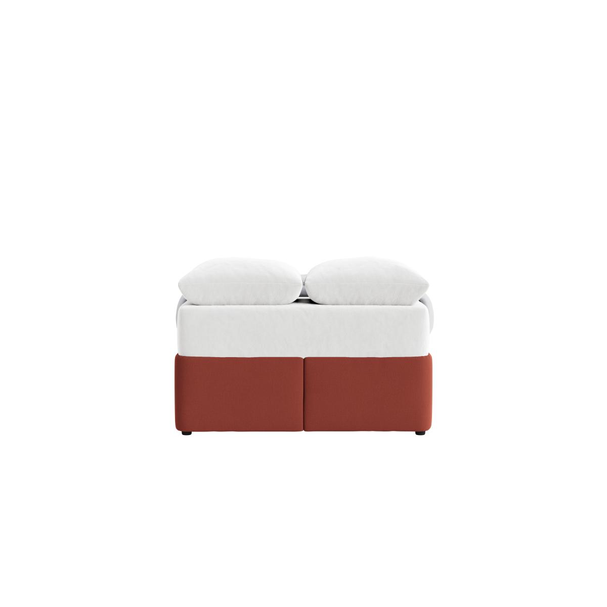 I love this storage bed for its clean, contemporary look and practicality. Its minimalist design works well in modern or Scandi-inspired interiors, especially when paired with neutral tones or soft textures. The terracotta base adds warmth and a touch of colour, making it a versatile choice. Practical styling tips include keeping bedding simple and textured to highlight the structure, or layering with throws and cushions in complementary shades for a cosy feel. It’s ideal for bedrooms where space-saving is key, offering both a tidy appearance and hidden storage, making it perfect for city living apartments or guest rooms.