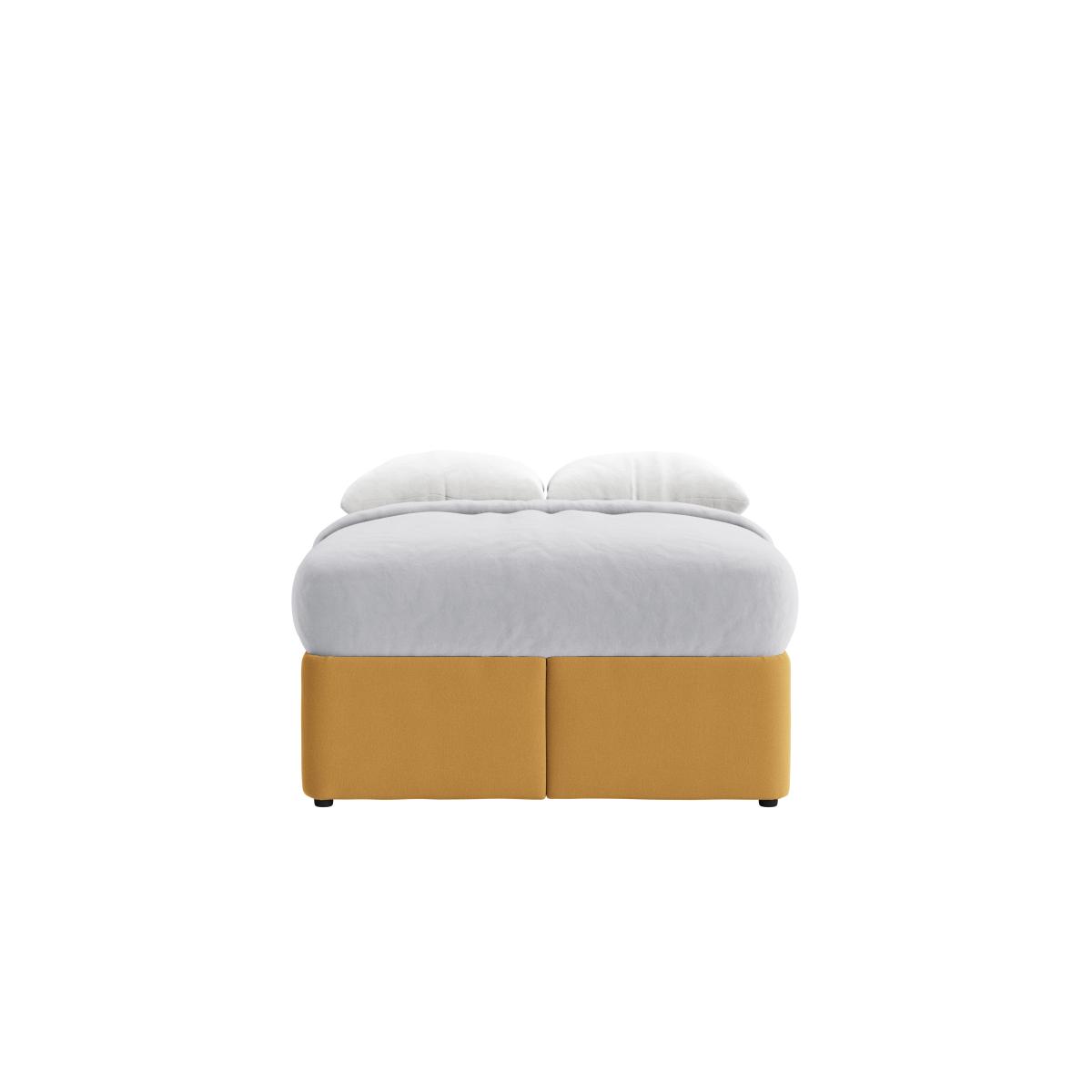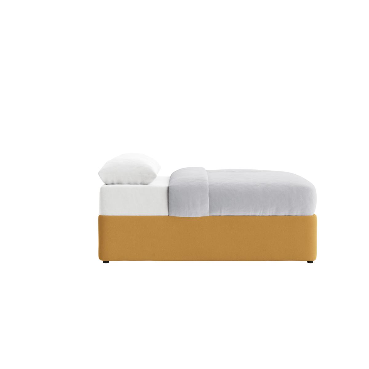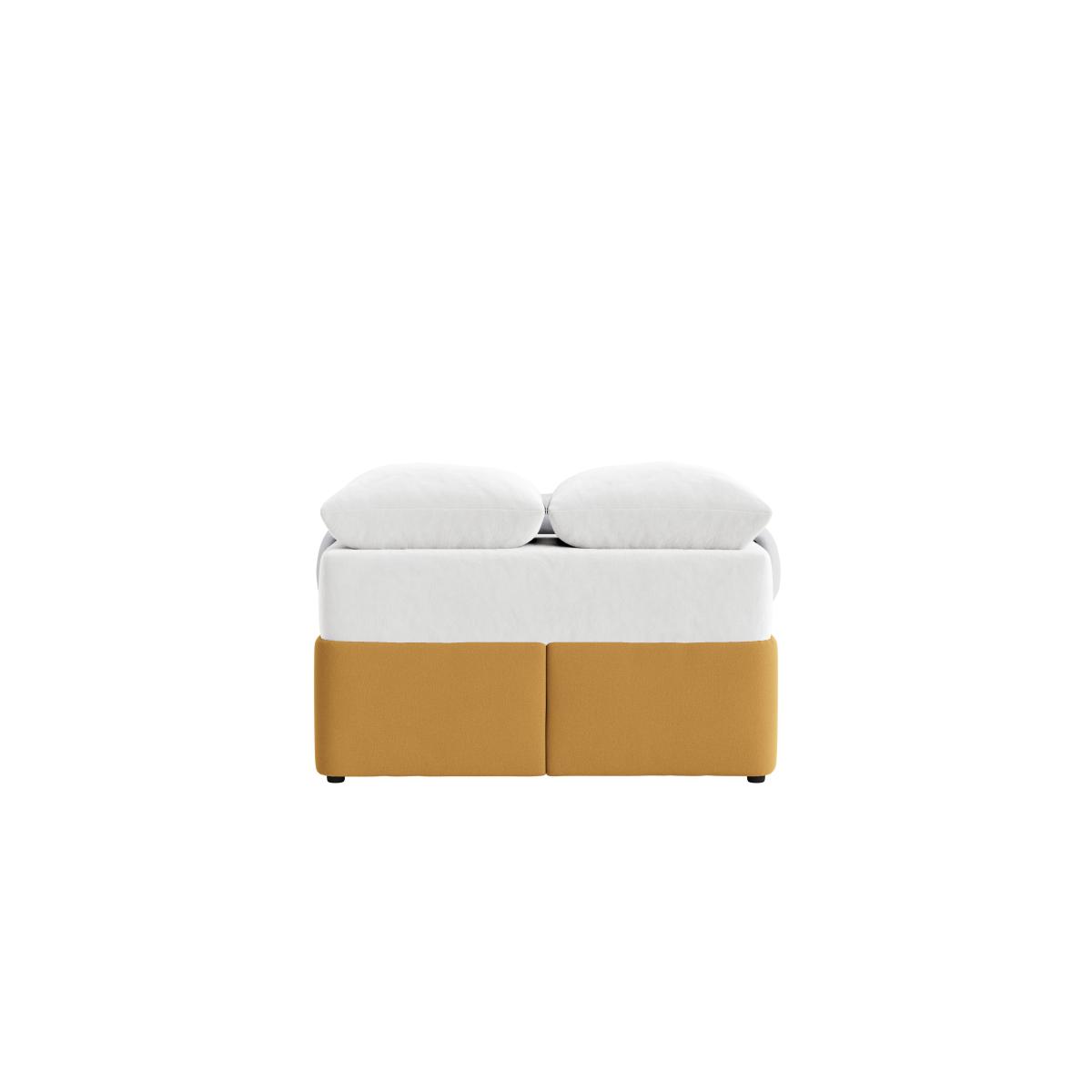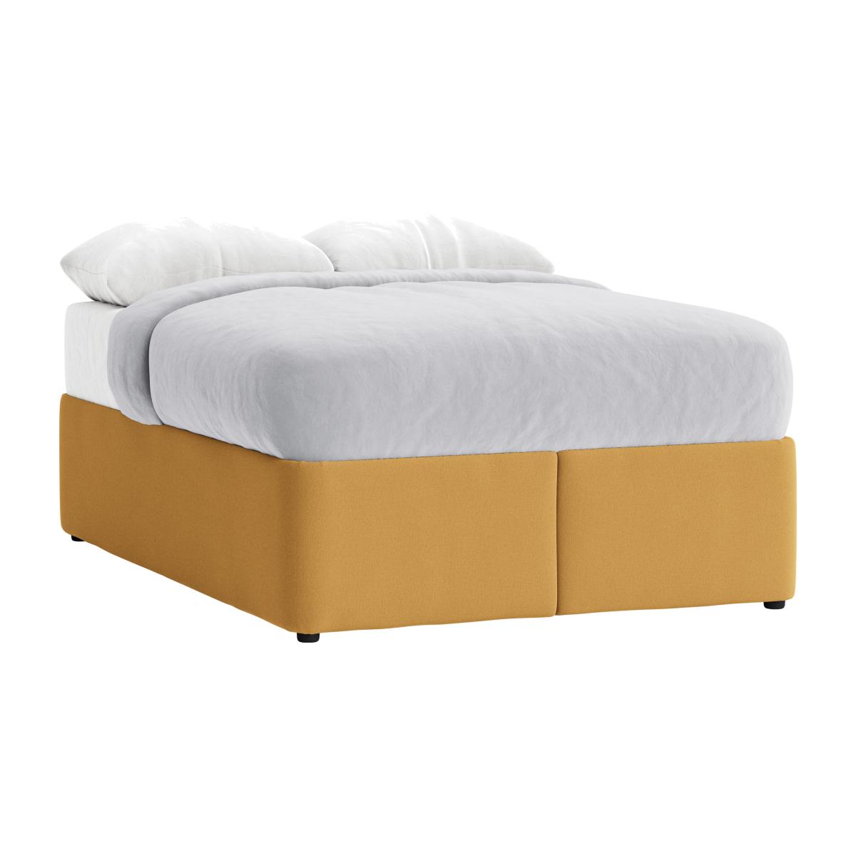 I really like this storage bed for its clean lines and practical design, making it a versatile choice for various interiors. It's ideal for modern or minimalist spaces, but can also work well with more eclectic or cosy schemes when styled thoughtfully. The storage functionality is a real bonus, perfect for keeping bedrooms tidy without sacrificing style. To style it effectively, consider pairing it with layered textures-like a textured throw or patterned cushions-and keep the bedding neutral for a sophisticated look. Its warm mustard colour adds softness and warmth, so it works beautifully with earthy tones or monochrome palettes, creating a welcoming and uncluttered bedroom aesthetic.