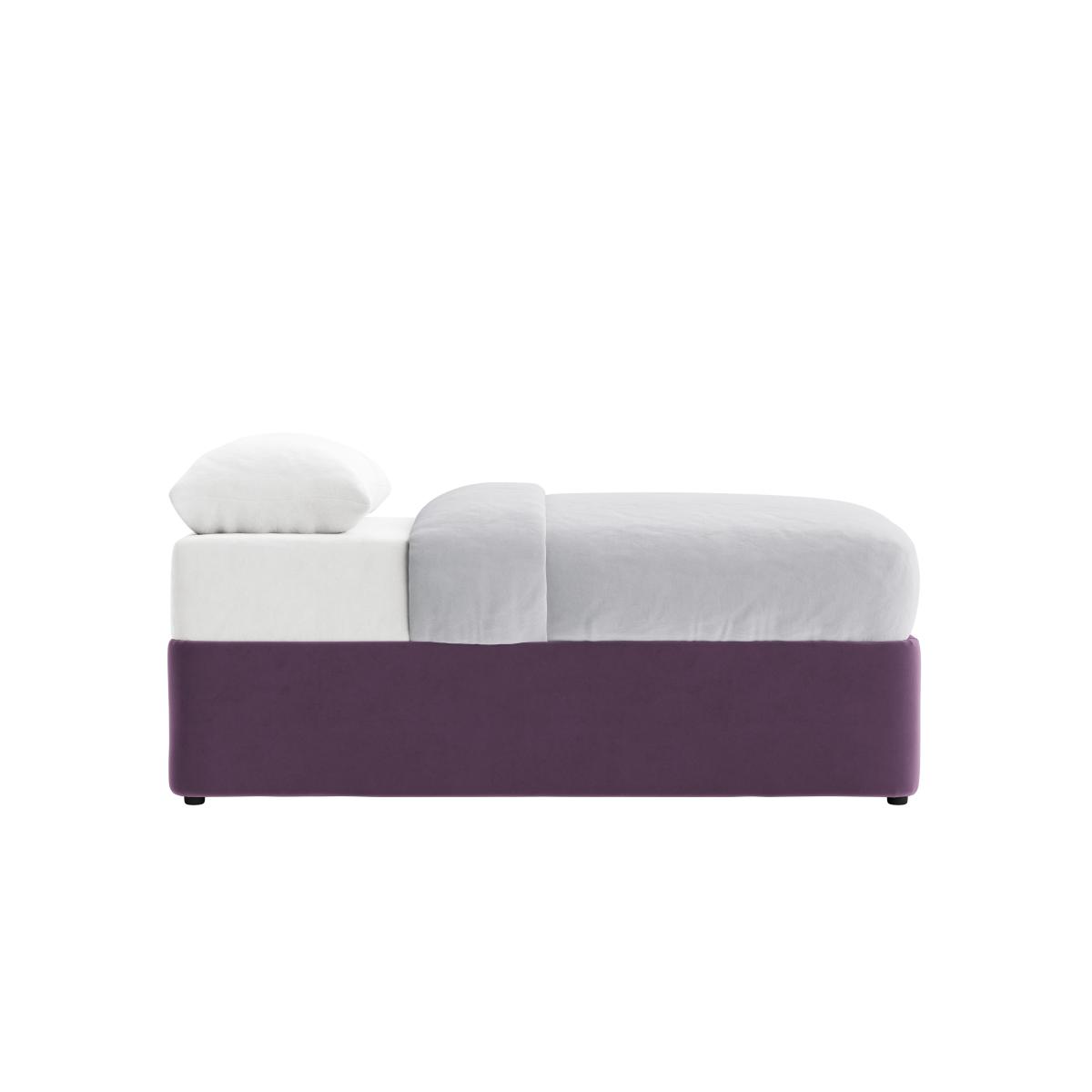 I love this storage bed for its clean, contemporary look and practical appeal. Its simplicity means it works well in both minimalist and eclectic interiors, adding a clever utilitarian touch without compromising style. The deep purple base lends a subtle pop of colour that can be paired with soft neutrals or richer tones for a cosy yet polished feel. When styling, consider keeping bedding understated - think crisp whites or muted hues - to highlight the smart design and colour contrast. Practical tip: use the internal storage for seasonal bedding or spare pillows, making it ideal for compact spaces where clever storage is key. It’s a versatile piece that balances function with modern appeal perfectly.