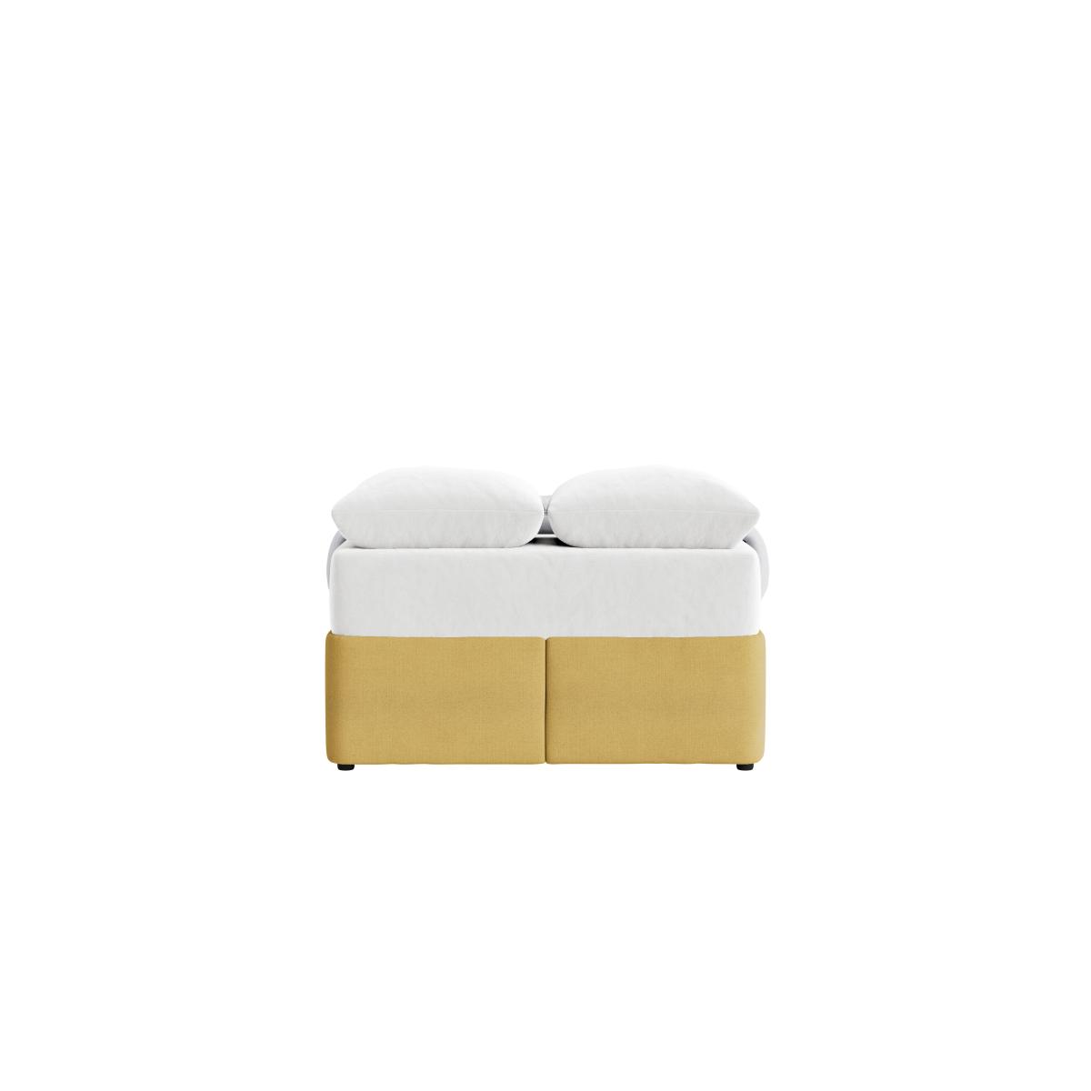 I love this storage bed for its clean lines and practical design, making it a versatile addition to a variety of interiors. Its bright yellow base adds a cheerful pop of colour, perfect for modern, boho, or even eclectic bedrooms. It's especially suited to spaces where clever storage is a priority without sacrificing style, as the lid lifts to reveal ample space for bedding, clothes, or other essentials. For styling, consider pairing it with soft textiles and layered bedding to keep the look cosy, or contrasting it with neutral tones and minimal accessories for a more contemporary feel. This piece works particularly well in casual, relaxed schemes but can be dressed up with vibrant cushions and throws for a lively, personalised look.