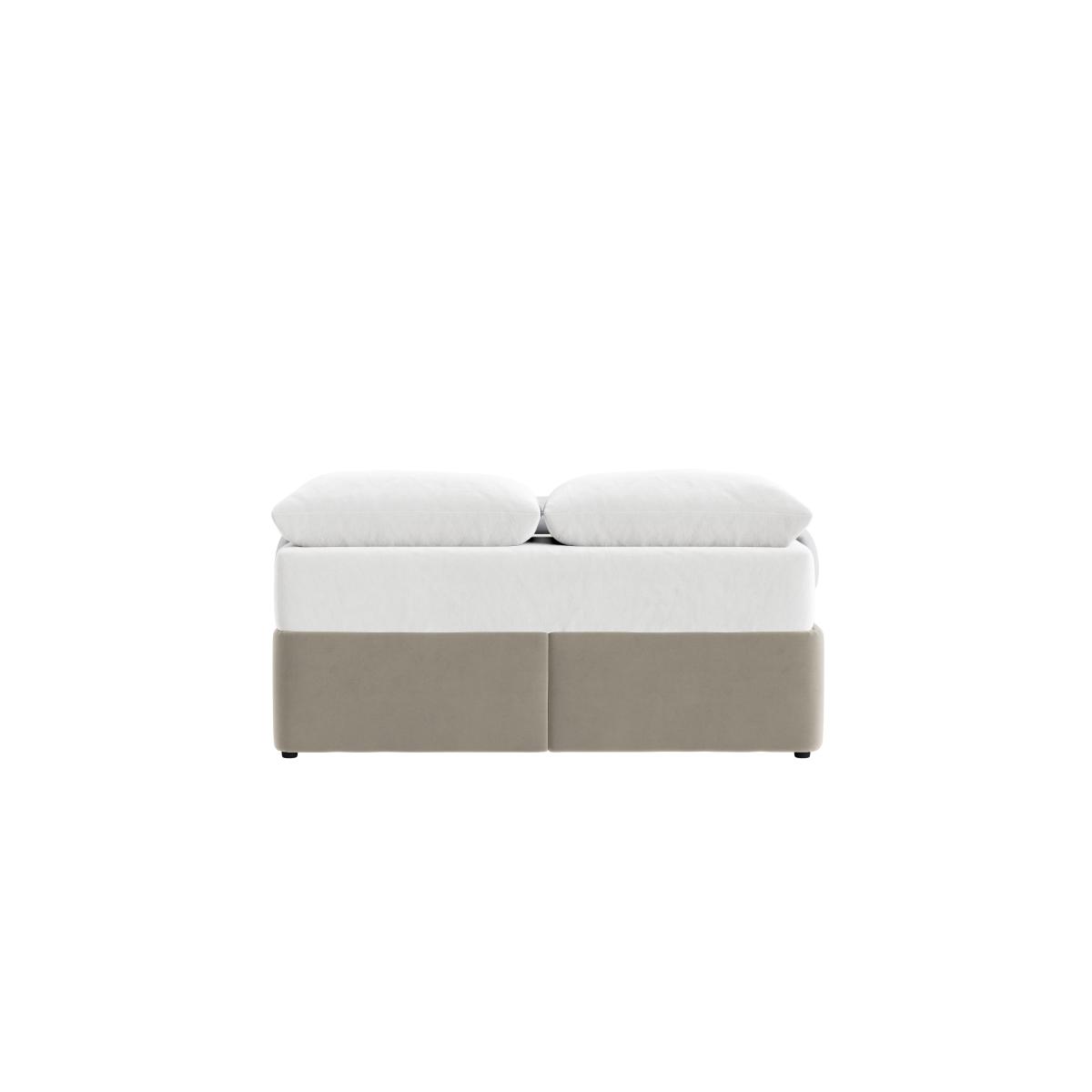 This nifty storage base lifts up easily to reveal loads of space for squirreling things away. You can easily add any one of our headboards to it. Handy, eh?