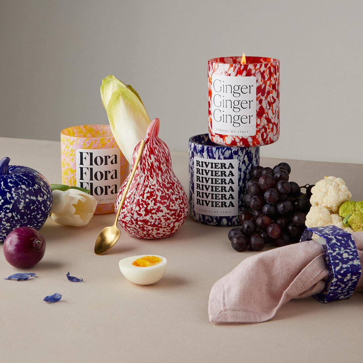 Bring beautiful fragrance and design into your home with this Macchia scented candle from Stories of Italy. Handmade by master artisans, the Murano glass container boasts a striking effect created through multiple layers of colourful pigments and flakes. Filled with pure Italian vegetable wax and a 100% cotton wick, this candle features an immersive scent and once exhausted, the vessel can be repurposed as a small vase or pen holder.