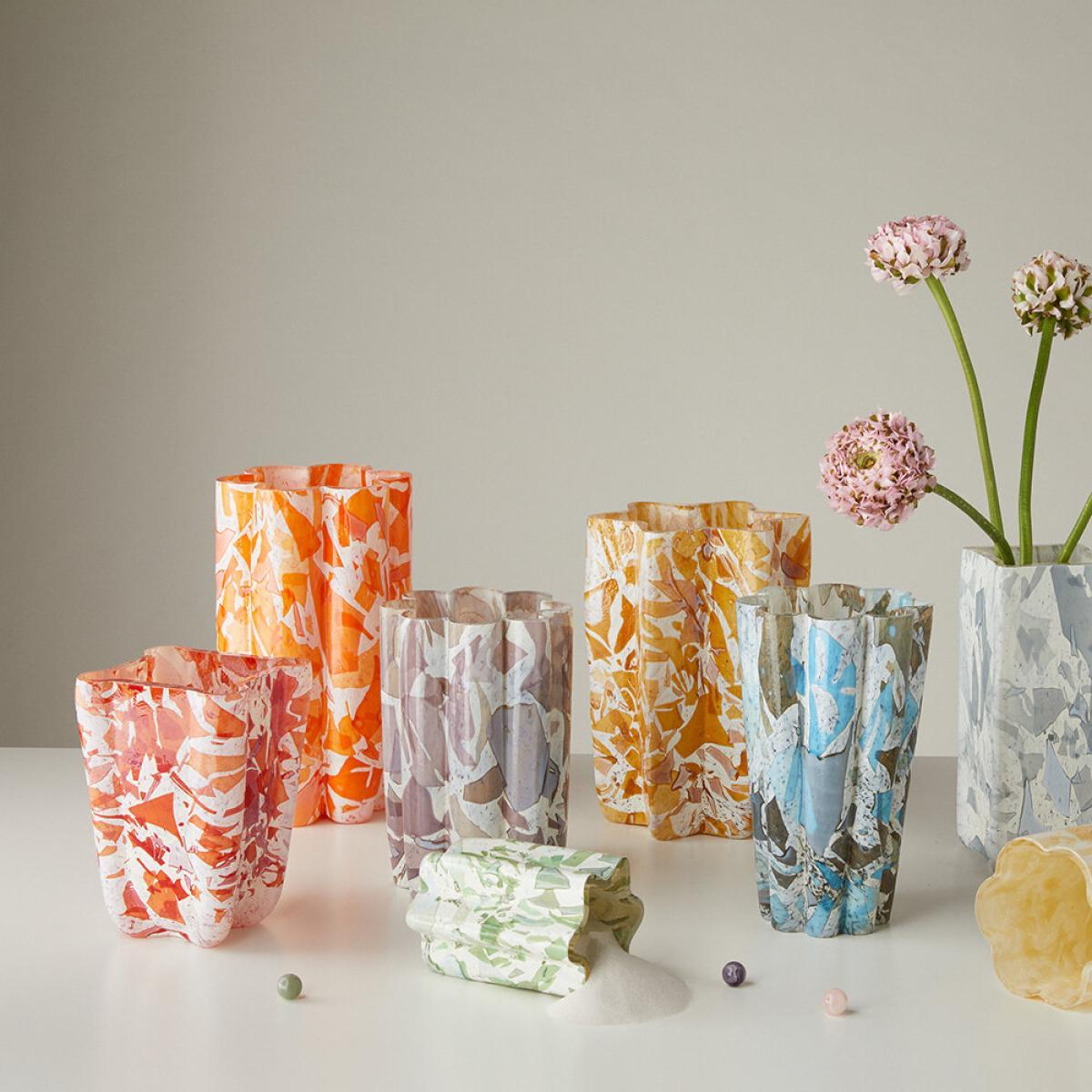 Brighten up your home with this Nougat vase from Stories of Italy. Crafted from Murano glass, this vase features a terrazzo-like pattern that was achieved by using coloured pieces and shards of previously blown glass against opaque white glass. Hand-finished in Italy by skilled artisans, it will make a striking addition to any space with or without flowers. Key features: * Material: Murano glass * Dimensions: Ø15xH26.5cm * Terrazzo-like pattern * Orange, pink and white tones * Created by using pieces and shards of previously blown glass against an opaque white glass * Mouth-blown and hand-finished using traditional techniques in Italy * Please note, due to the handmade nature of this item, each piece is unique and therefore no two are alike