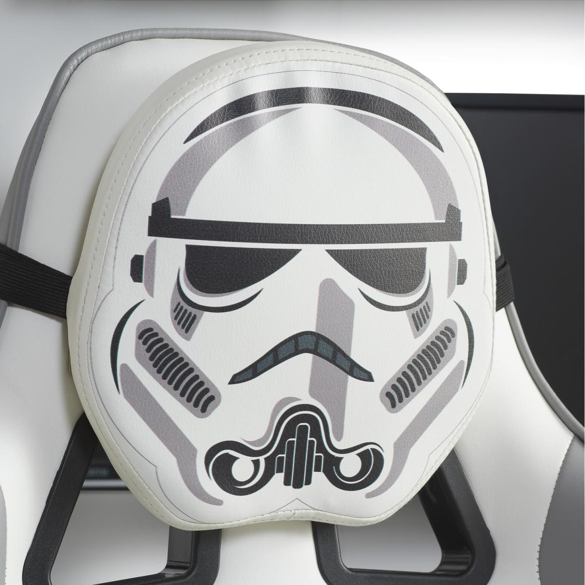 Join forces with the dark side and stand alongside the Stormtroopers to fight the Sith-controlled Galactic Empire. The Stormtrooper computer gaming chair is ergonomically designed for hours of gaming comfort. Featuring a stormtrooper head as a headrest, and a fully adjustable, swivel and lock mechanism seat which offers enhanced support and stability during those longer, hard-core gaming sessions. This Star Wars themed gaming chair is covered in faux leather and features the elite shock trooper making it a fine addition to your bedroom or office.
