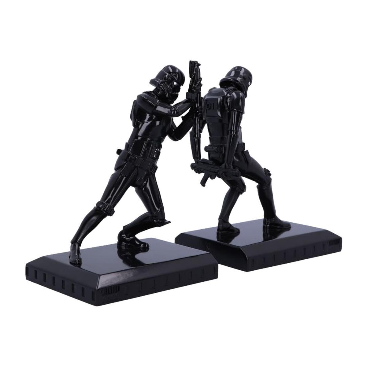 Known for their suit of armour and shocking aim, the Stormtrooper is easily noticeable by all! Based on the original moulds that Andrew Ainsworth of Shepperton Design Studios produced, our range of Stormtrooper merchandise captures their character and are as close as it gets to the original film props. Here you can see a pair of Troopers trying their hardest to keep your favourite novels standing straight. One has their hands up, E11 Blaster in their grasp pushing their weight to the left, whilst the other stands back to the books, holding their Blaster behind them. Cast in the finest resin before being carefully hand-painted, these Stormtrooper Shadow Bookends are a perfect staple for anyone into sci-fi, movie merchandise or pop culture collectibles.