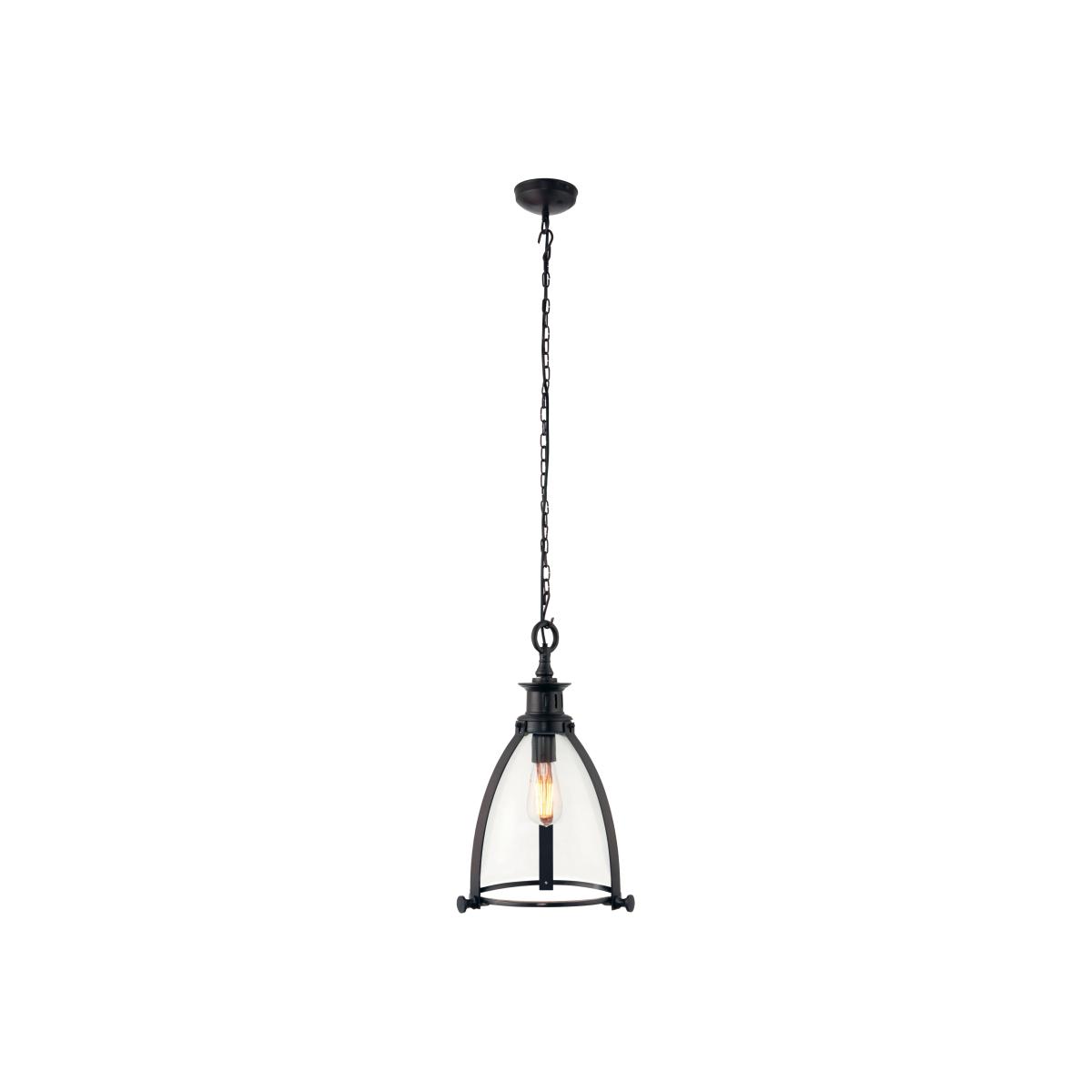 Medium timeless glass pendant, framed by metal banding with classic details in a smart polished nickel finish. Small pendant also avaliable.
