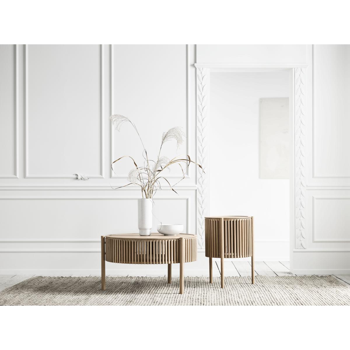 Natural simplicity for this elegant handcrafted solid oak side table. It has an ethereal openwork facade made up of an assembly of wooden rods. Under the removable top is a storage space. The designers behind the Story collection, Anna Karnov & Clara Mahler, wanted to create a piece with a durable design. Quality craftsmanship and natural oak that changes appearance over the years, highlight the uniqueness and singular history of each table. The tables are made of FSC-certified wood. Danish design duo Anna Karnov and Clara Mahler are motivated by a desire to create cohesion in the relationship between products and the user. Their design should look durable while remaining flexible in terms of functionality and aesthetics. That’s why they use materials that age gracefully and don’t allow themselves to be influenced by fleeting trends. Their design creations must stand the test of time and be able to tell their own story. Designed in Denmark, each of the Bolia brand's creations is built to last and handcrafted by some of Europe's finest manufacturers. Bolia products are tested to the highest quality standards, and meet international and European standards for strength, durability, stability and safety. Natural materials take pride of place. Passionate about the definition of the new Scandinavian design, the team of designers is entirely dedicated to creating new, inspiring, unique and original models.