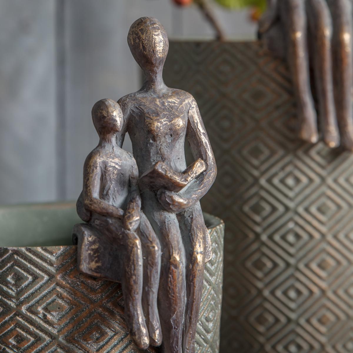 Add personality and character to a planter or vase with our range of pot hangers. This pot hanger featuring a parent and child, reading together adds a charming touch as the sit on the rim of the pot.