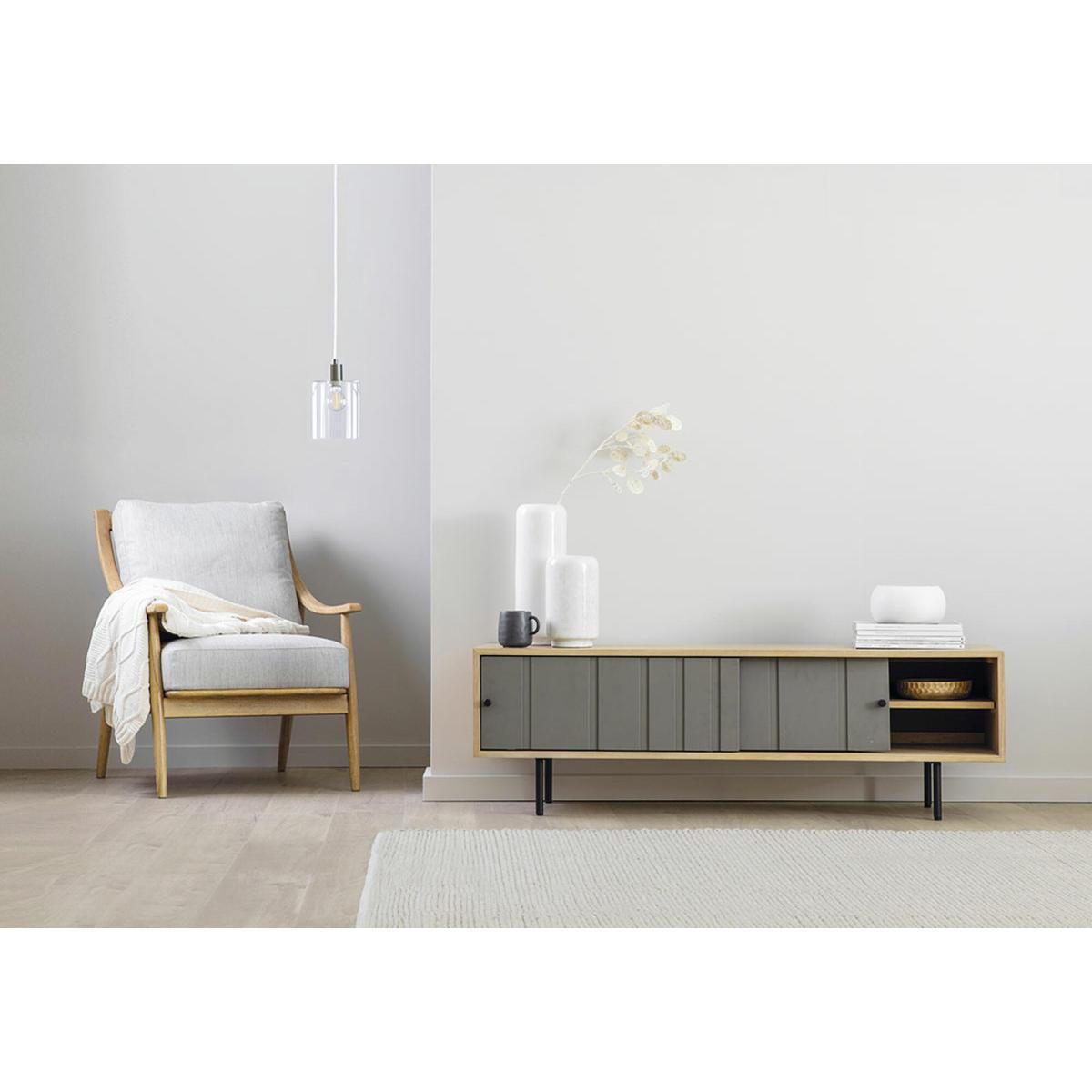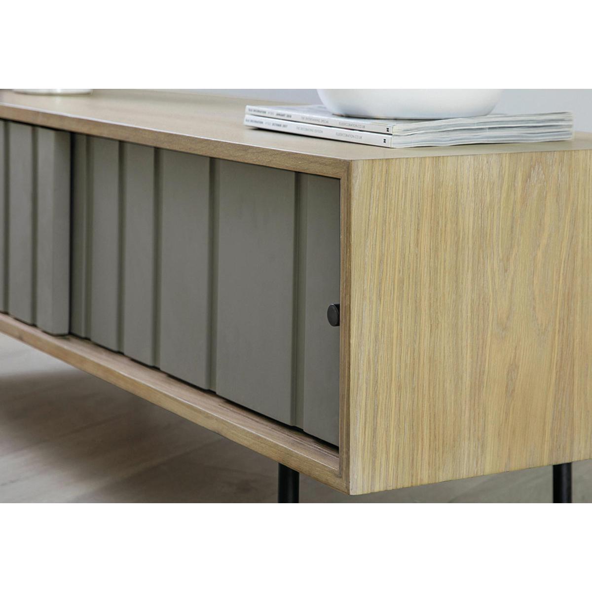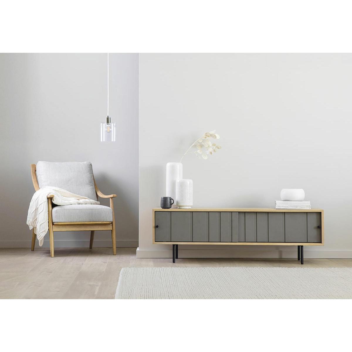 I’d reach for this low console whenever I need clean-lined storage without weighing the room down. Its slim black legs and the subtle green-grey doors framed in oak suit Scandi or contemporary schemes, and the shallow depth makes it ideal even in narrower lounges or bedrooms. Inside, you can neatly hide games, remotes and streaming boxes, while its top surface remains free for a lamp, a few choice ceramics and a trailing houseplant. For styling, keep items in small groupings and vary heights to avoid a flat look - think a stack of books topped with a small vase next to a low candleholder. If you’re hiding cables, tuck them behind the back panel and use barely noticeable cable clips so the overall effect stays crisp. Underneath, a woven basket can add texture and extra stow-away space without cluttering.
