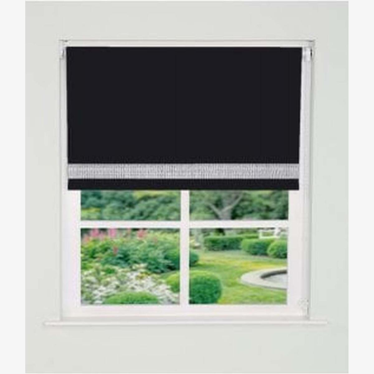Straight Diamante Edge Border Blackout Roller Blind - Black / 70cm