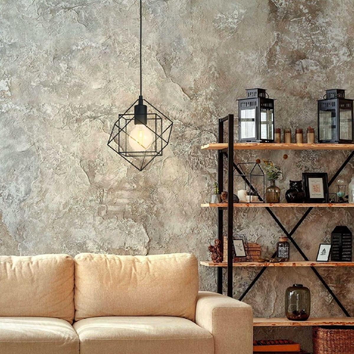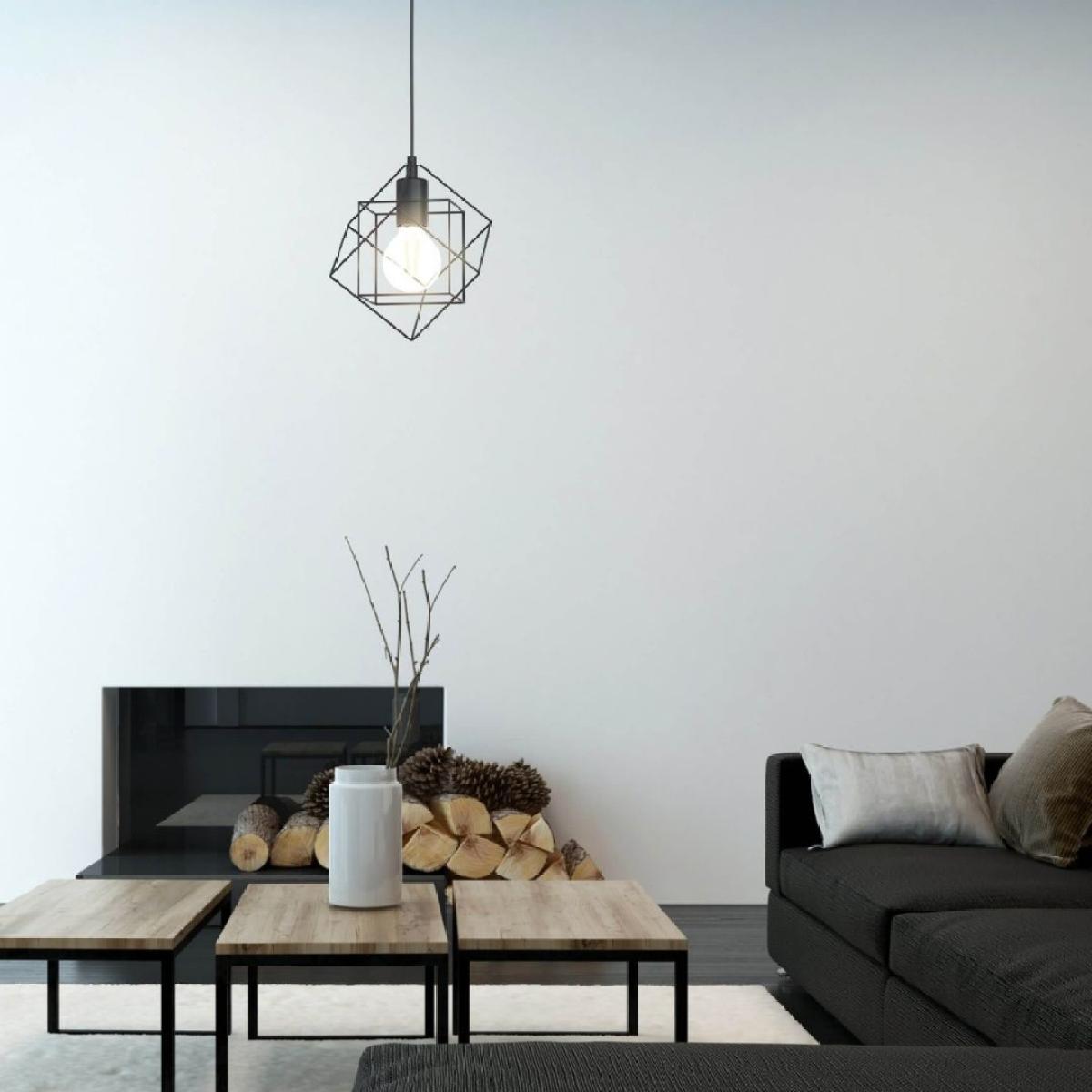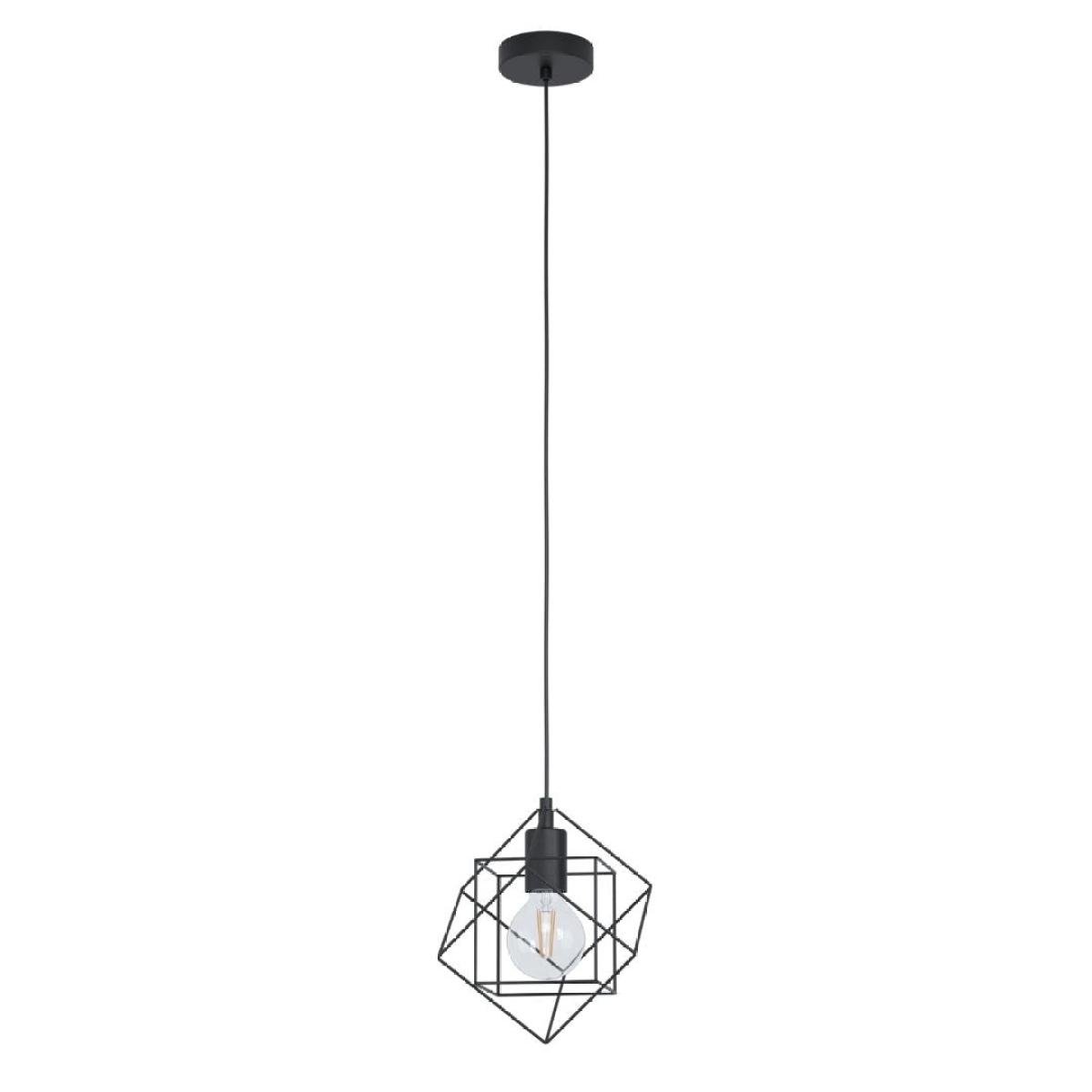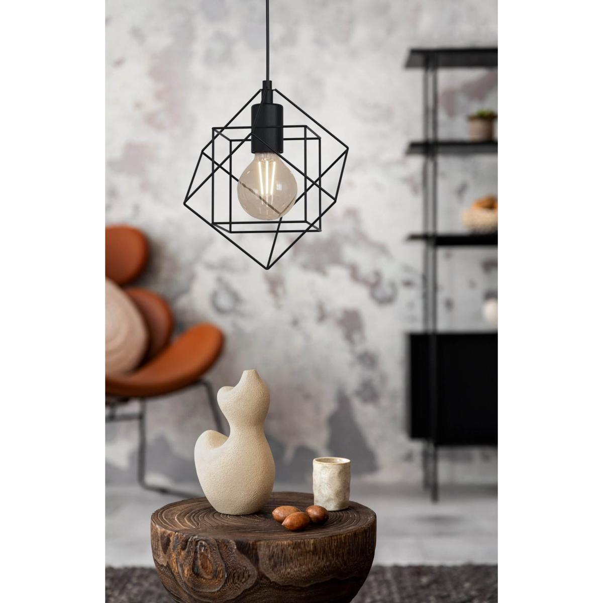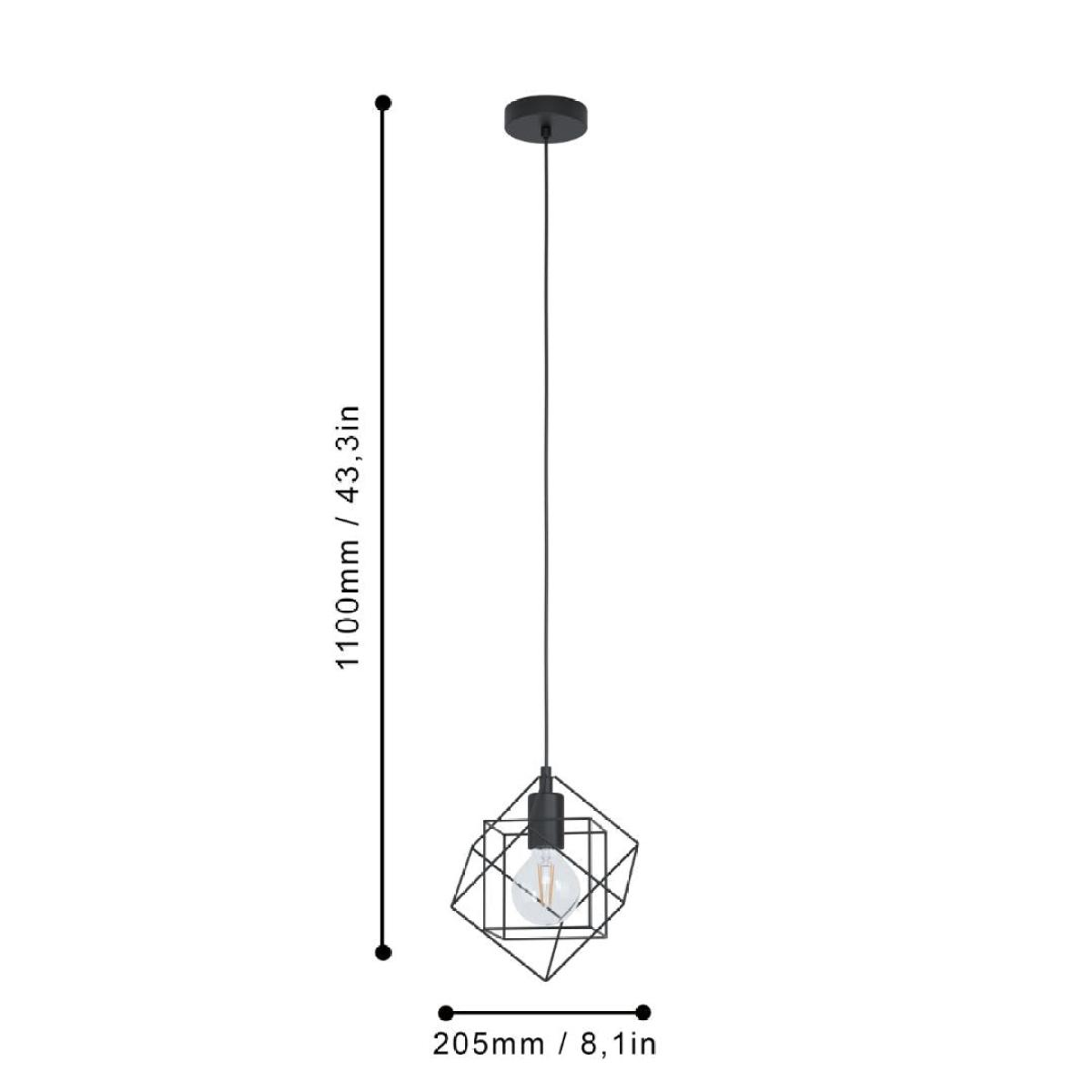 The lampshade of the Straiton pendant light features two square wire frames finished in black. The interlocking wire cubes create a fascinating play of light and shadow as soon as the light is on. The pendant light blends seamlessly with the vintage trend and modern interiors. The product offers stylish lighting, whether in the kitchen, the living room, or above the table in the dining room. The pictured lightbulb is not included. The product has an E27 lamp holder and requires an E27 lightbulb. The lampshade of the Straiton pendant light features two square wire frames finished in black. The interlocking wire cubes create a fascinating play of light and shadow as soon as the light is on. The pendant light blends seamlessly with the vintage trend and modern interiors. The product offers stylish lighting, whether in the kitchen, the living room, or above the table in the dining room. The pictured lightbulb is not included. The product has an E27 lamp holder and requires an E27 lightbulb.