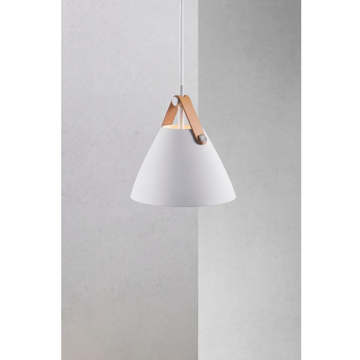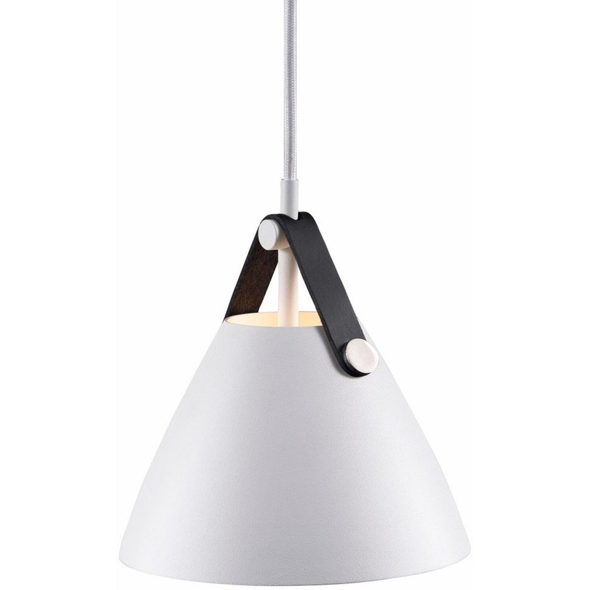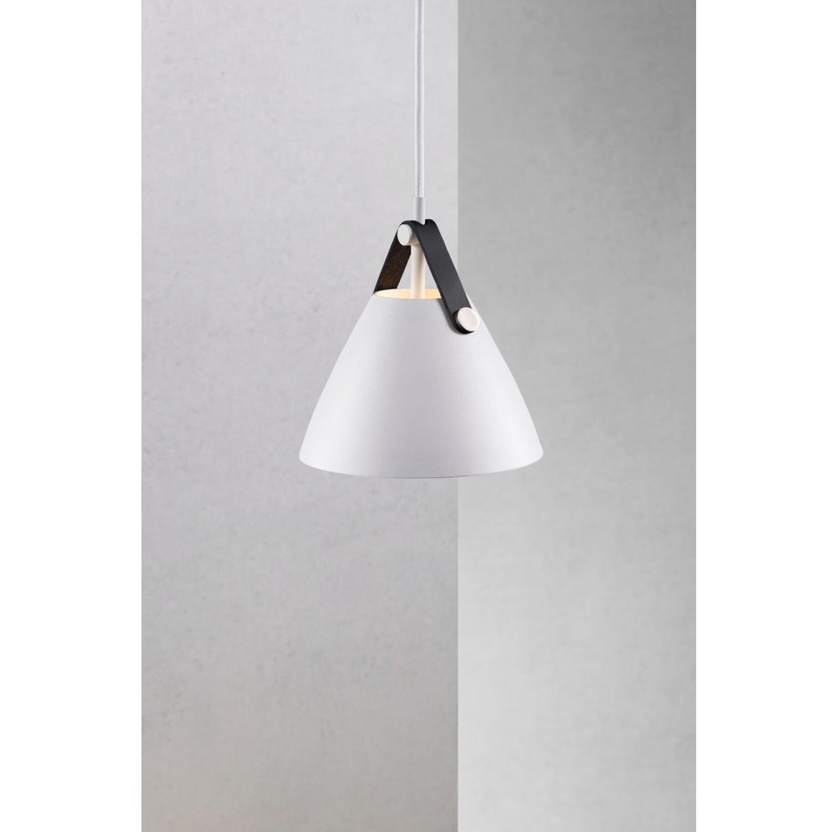Add wonderful flair to your decorating style as well as brilliant light with the Strap White 15cm Dome Pendant Ceiling Light. Detailed with a leather strap this Nordic-inspired meets industrial fixture is a great choice for a dining area or dim corner for beautiful light.