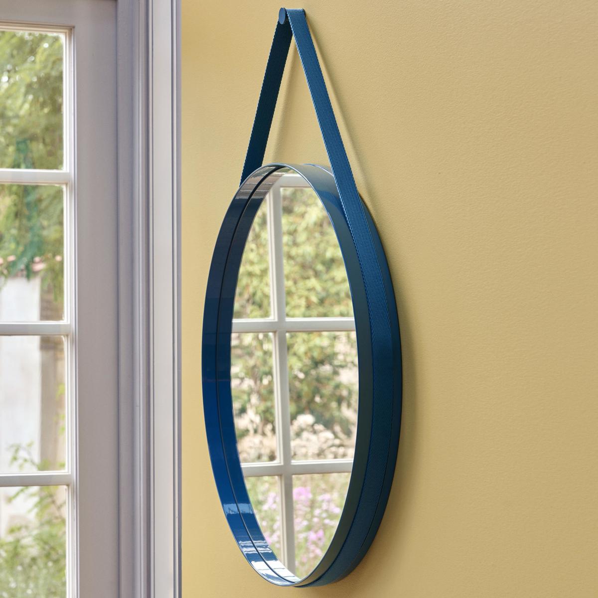 Strap n°2 Wall mirror metal blue / Ø 70 cm - Fabric strap - Hay