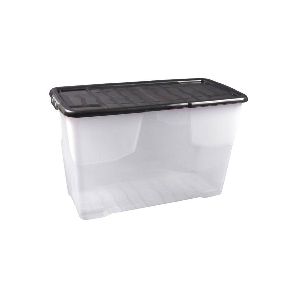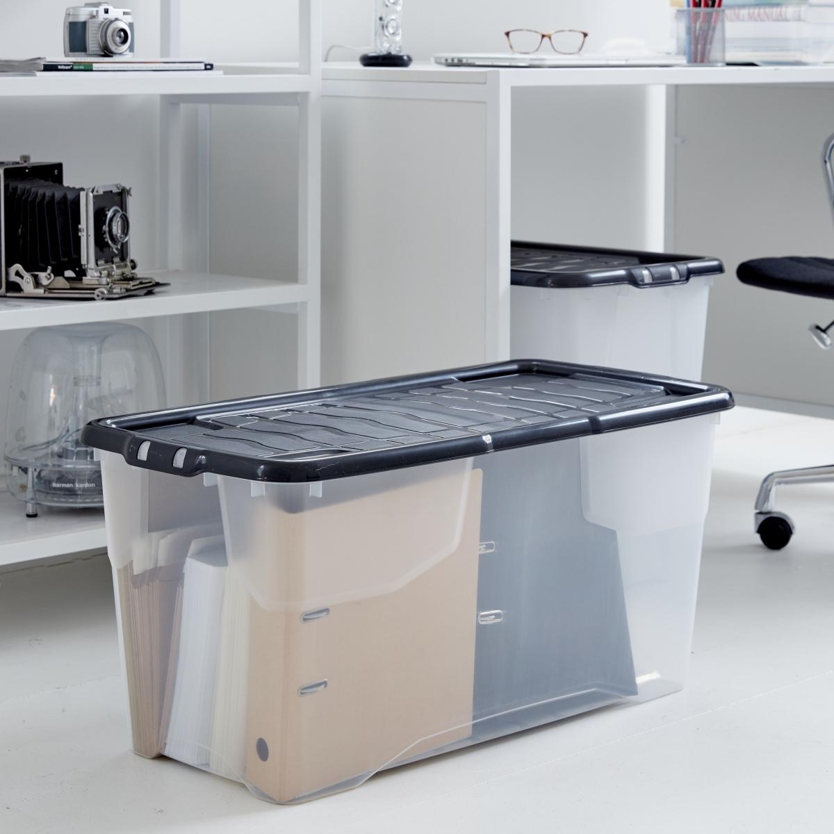 * Stackable with lid on* Nestable without lid* Transparent so you can see what's in there* Clip lock lid These generously sized box, with a substantial 100-liter capacity, cater to your larger items or extensive storage requirements. The secure lids ensure the protection of your belongings, while the sturdy handles facilitate effortless portability and rearrangement.