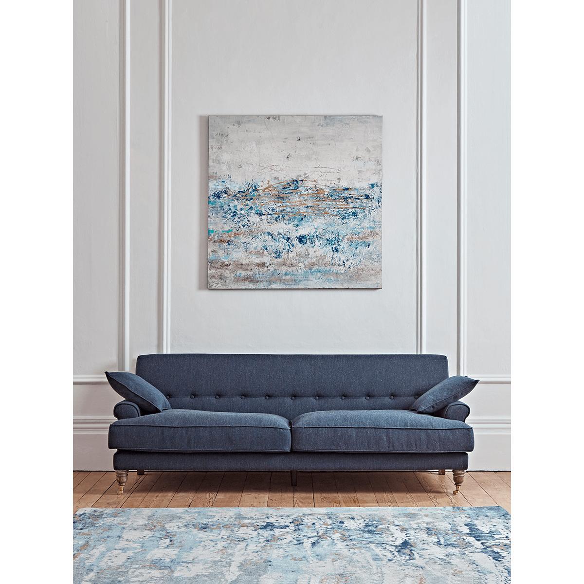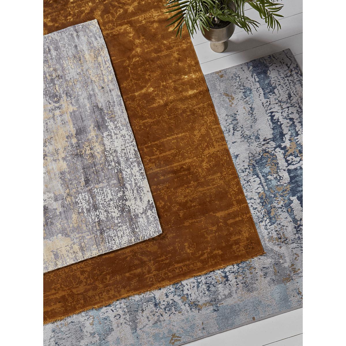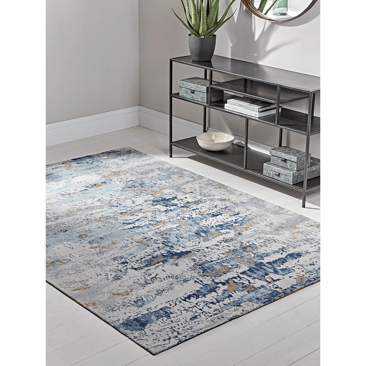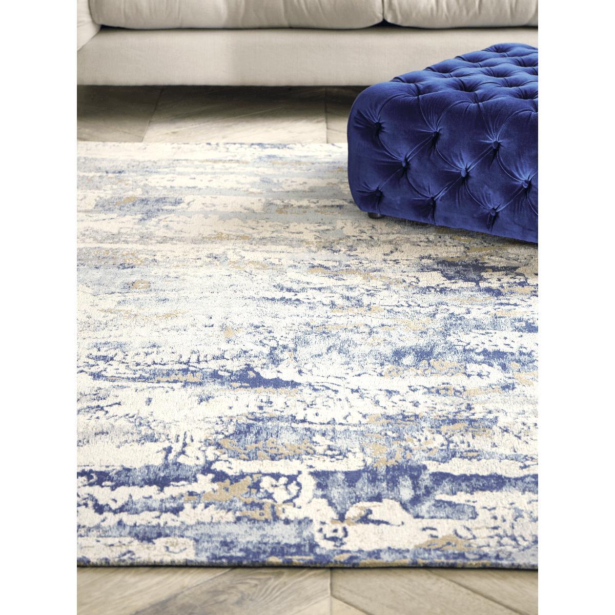 Crafted from a cotton blend with an exquisite marbled watercolour pattern in blue, soft white and gold, our statement rug will add colour and pattern to your living space.