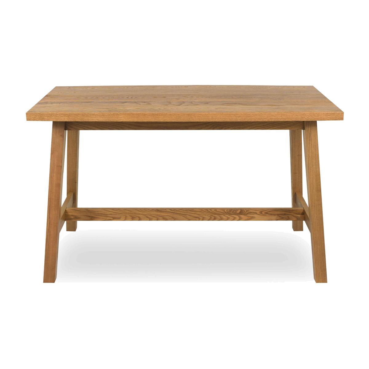 The beauty and craftsmanship of traditional oak furniture meets contemporary finishes and striking urban details in our Stratford range. Offering an extensive choice of pieces for stylish living rooms and dining rooms, the collection’s signature style motifs include planked table tops and surfaces, wire brushed and oiled finishes, H-frame bases and creative space-saving storage solutions. Extending dining tables have striking boat-shaped tops and dining sets include versatile seating options – dining benches and the range’s on-trend dining and dining arm chairs that are inspired by mid-century design. A fantastic choice for classic, modern country and industrial interiors. With its eye-catching boat-shaped top, characterful planked finish and H-frame base, this bar table is as stylish as any dining table. Why you'll love it Traditional oak furniture reimagined for fans of contemporary industrial design. This bar table brings style and character to a casual dining space. Curved boat-shaped top with an H-frame base. Planked table top is made with oak and oak veneer. Wire brushed for a rustic finish. Top is carefully oiled and then sealed so it’ll never need re-oiling. This bar table is part of our Stratford range. What you need to know Seats 4. Made with oak, oak veneer and solid ash. Every piece of wood has unique and natural marks, knots and colour variation. Avoid placing in direct sunlight or close to a heat source. We recommend using coasters and placemats at all times. Shop our Stratford collection for well-crafted wood furniture for living and dining.
