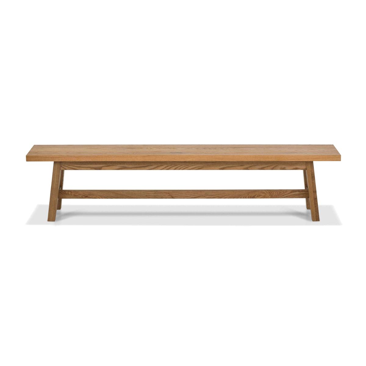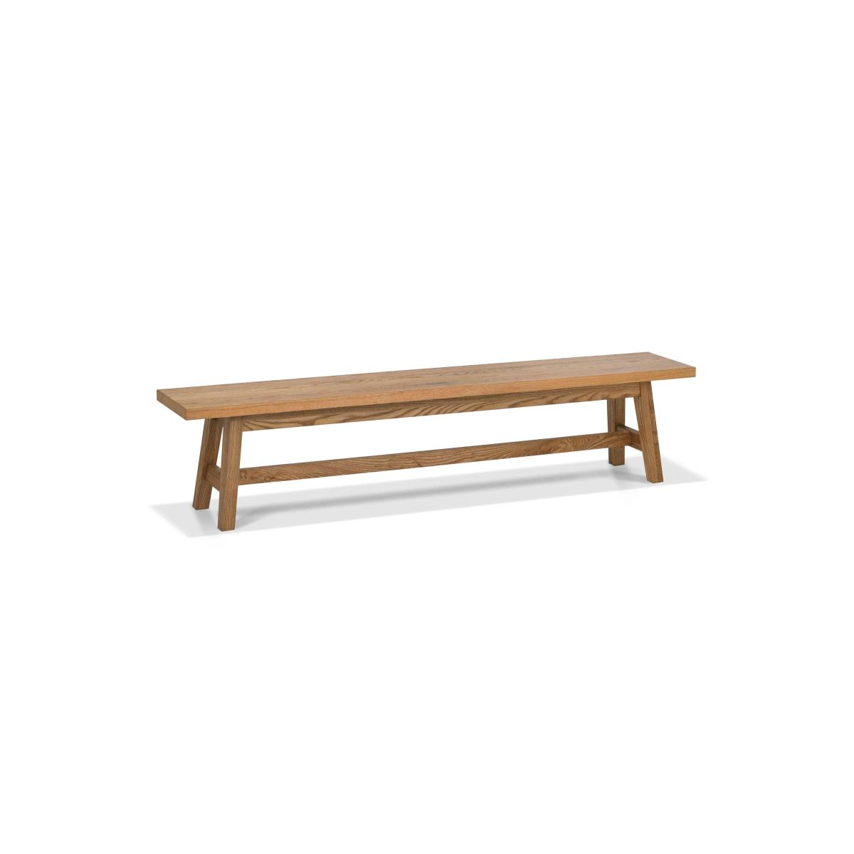 The beauty and craftsmanship of traditional oak furniture meets contemporary finishes and striking urban details in our Stratford range. Offering an extensive choice of pieces for stylish living rooms and dining rooms, the collection’s signature style motifs include planked table tops and surfaces, wire brushed and oiled finishes, H-frame bases and creative space-saving storage solutions. Extending dining tables have striking boat-shaped tops and dining sets include versatile seating options – dining benches and the range’s on-trend dining and dining arm chairs that are inspired by mid-century design. A fantastic choice for classic, modern country and industrial interiors. This nicely crafted dining bench makes bench seating stylish as well as space-saving thanks to its rustic oak finish and classic H-frame base. Why you'll love it Traditional oak furniture reimagined for fans of contemporary industrial design. Farmhouse-inspired dining bench is stylish and saves space. Planked top is made with oak and oak veneer. Wire brushed for a rustic finish. Carefully oiled and then sealed so it’ll never need re-oiling. Ash wood H-frame base. Also available in a smaller size. This large dining bench is part of our Stratford range. What you need to know This large dining bench seats 4. Made with oak, oak veneer and solid ash. Every piece of wood has unique and natural marks, knots and colour variation. Avoid placing in direct sunlight or close to a heat source. Shop our Stratford range for well-crafted wood furniture for living and dining.