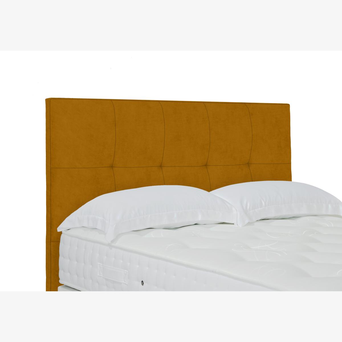 Discover The Artisan Collection, designed to bring handcrafted luxury and style to your bedroom. This premium range includes a selection of divan bases – from traditional platform tops offering a firmer feel to sumptuous pocket sprung options for enhanced mattress comfort. Many divan bases are available with storage drawers, in both standard and on-trend shallow designs. Complement your divan with one of the collection’s striking floor-standing headboards, including standout winged designs. Each piece in The Artisan Collection is beautifully upholstered in a wide choice of luxury fabrics and handcrafted in the UK, ensuring exceptional quality and elegant style for your sleep sanctuary. Bring chic elegance to your bedroom in the form of this beautiful and very well-cushioned floor standing headboard. Handcrafted exclusively for Furniture Village, it has a single row of buttoning. Why you'll love it Minimal buttoning gives this cushioned headboard chic modern style. Fully upholstered from top to floor for a flawless finish and a luxurious look. Made with sustainable FSC-sourced wood. In a choice of beautiful fabrics. Handcrafted in the UK. Also available as a strutted headboard. Find the Stratton standard floor standing headboard only at Furniture Village. What you need to know This floor standing headboard is supplied with bolts to attach it to a divan base. Available in single, small double, double, king and super king sizes. 130 cm tall. Clean regularly using a soft brush or vacuum with the curtain attachment. Deal with any spills promptly. Professional cleaning advised for oil- and grease-based stains. Some fabrics can show wear on areas of more use or in direct sunlight. Item code: STRTH230--033