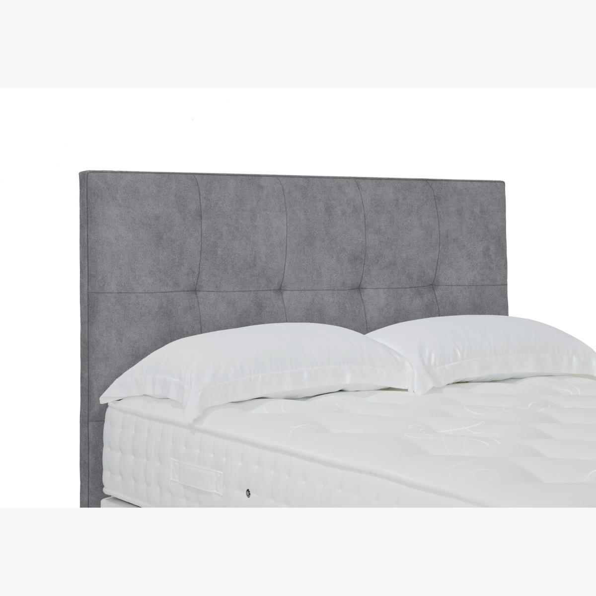 Discover The Artisan Collection, designed to bring handcrafted luxury and style to your bedroom. This premium range includes a selection of divan bases – from traditional platform tops offering a firmer feel to sumptuous pocket sprung options for enhanced mattress comfort. Many divan bases are available with storage drawers, in both standard and on-trend shallow designs. Complement your divan with one of the collection’s striking floor-standing headboards, including standout winged designs. Each piece in The Artisan Collection is beautifully upholstered in a wide choice of luxury fabrics and handcrafted in the UK, ensuring exceptional quality and elegant style for your sleep sanctuary. Bring chic elegance to your bedroom in the form of this beautiful and very well-cushioned floor standing headboard. Handcrafted exclusively for Furniture Village, it has a single row of buttoning. Why you'll love it Minimal buttoning gives this cushioned headboard chic modern style. Fully upholstered from top to floor for a flawless finish and a luxurious look. Made with sustainable FSC-sourced wood. In a choice of beautiful fabrics. Handcrafted in the UK. Also available as a strutted headboard. Find the Stratton standard floor standing headboard only at Furniture Village. What you need to know This floor standing headboard is supplied with bolts to attach it to a divan base. Available in single, small double, double, king and super king sizes. 130 cm tall. Clean regularly using a soft brush or vacuum with the curtain attachment. Deal with any spills promptly. Professional cleaning advised for oil- and grease-based stains. Some fabrics can show wear on areas of more use or in direct sunlight. Item code: STRTH230--010