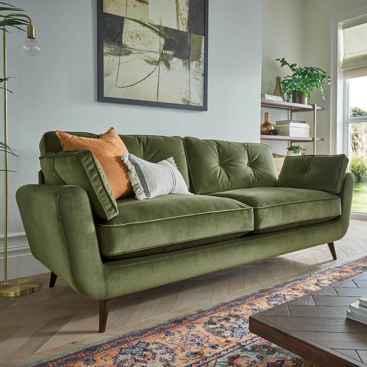 Saving the planet while you sit – the Stratus 4 Seater Sofa would be a gorgeous, eco-friendly addition to your home!Lovingly crafted in the UK; quality and sustainability are at the core of the Stratus range. Surrounding the natural, responsibly sourced timber frame; all upholstery, fillings, linings and cushions are made from recycled fibres. Even down to the springs - every inch of this sumptuous sofa has been cleverly re-purposed, helping reduce waste and do our bit for the environment! Not just made to protect the planet, but also to be admired - the striking Stratus silhouette will make a big statement in your home. Made from recycled bottles – you won’t be able to take your eyes (and tush) off of the tufted, buttoned seat cushions and piped upholstery. Perfectly pairing contemporary and traditional details, the Stratus collection would suit both modern and classic interior styles. Available in other sizes, with armchairs and footstool options; create your desired arrangement and transform your living room. With a selection of luxuriously soft velvet fabrics to choose from, completely refresh your living space or coordinate with your existing furniture! Arriving in completely recyclable packaging and super easy to assemble – break in your new sofa and celebrate your carbon footprint by popping your feet up!.