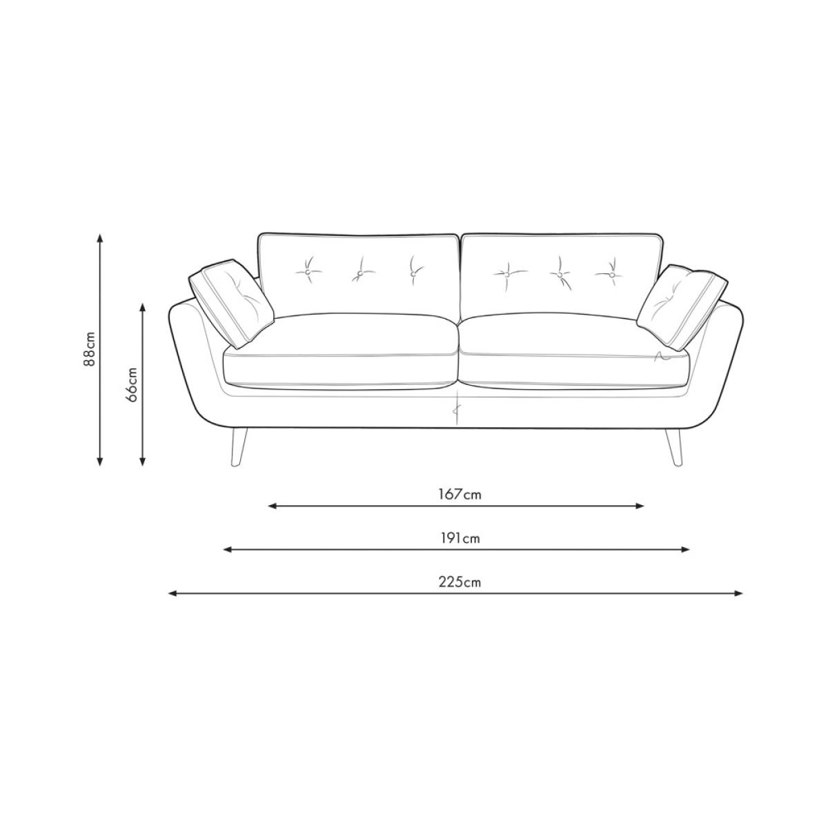 Saving the planet while you sit – the Stratus 4 Seater Sofa would be a gorgeous, eco-friendly addition to your home!Lovingly crafted in the UK; quality and sustainability are at the core of the Stratus range. Surrounding the natural, responsibly sourced timber frame; all upholstery, fillings, linings and cushions are made from recycled fibres. Even down to the springs - every inch of this sumptuous sofa has been cleverly re-purposed, helping reduce waste and do our bit for the environment! Not just made to protect the planet, but also to be admired - the striking Stratus silhouette will make a big statement in your home. Made from recycled bottles – you won’t be able to take your eyes (and tush) off of the tufted, buttoned seat cushions and piped upholstery. Perfectly pairing contemporary and traditional details, the Stratus collection would suit both modern and classic interior styles. Available in other sizes, with armchairs and footstool options; create your desired arrangement and transform your living room. With a selection of luxuriously soft velvet fabrics to choose from, completely refresh your living space or coordinate with your existing furniture! Arriving in completely recyclable packaging and super easy to assemble – break in your new sofa and celebrate your carbon footprint by popping your feet up!.