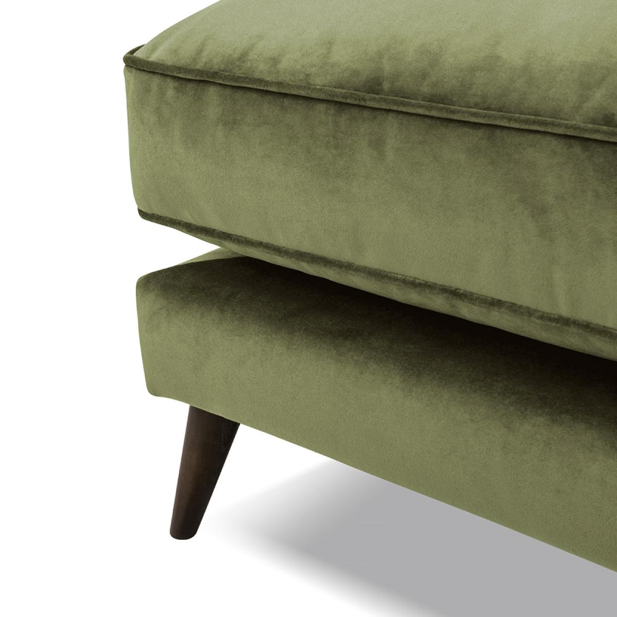 Designed to be paired with the eco-conscious sofas and snuggler chairs – relax and recline with the Stratus Footstool. Each design from the striking Stratus furniture collection has been made from responsibly sourced, recycled and repurposed materials. Styled in irresistibly soft velvets, you wouldn’t have known, but you’re helping save the planet as you sit and snuggle up! Featuring piped upholstery and solid wood legs - in a rich walnut stain finish; the Stratus footrest gives a nod to contemporary and classic styles. Fitting seamlessly into existing interiors, pair with treasured pieces or completely update your living space. Now get that kettle going… it’s time to give those tootsies a well-earned time out!.