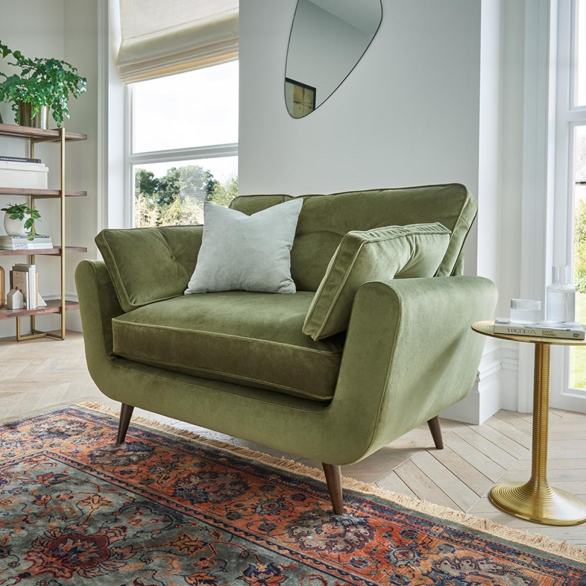 Coordinating with a selection of eco-conscious sofas; the Stratus Snuggler Chair has been made from recycled, re-purposed and responsibly sourced materials. Starting out as bottles and plastic fibres, the Stratus has been lovingly crafted in the UK, preventing these materials reaching landfill and the ocean! When you sink into the Stratus Snuggler armchair, you’ll have helped protect the planet! With a wide and deep seat and curved armrests – it’s the perfect spot to snuggle up and daydream! Featuring piped upholstery, buttoned bolster cushions, tufted details and solid wood feet - the Stratus collection perfectly pairs contemporary and classic characteristics. Versatile and a joy to style; pick from our luxuriously soft selection of velvets. Create a reading nook with a floor lamp, cosy throw and scatter cushion for good measure. Add the matching footstool to your set and pop your feet up while you’ve got your nose in a good book. Still pondering? The Stratus collection arrives in fully recyclable packaging and takes mere minutes to assemble… you’ll be cosied up in no time.
