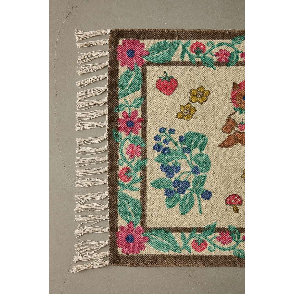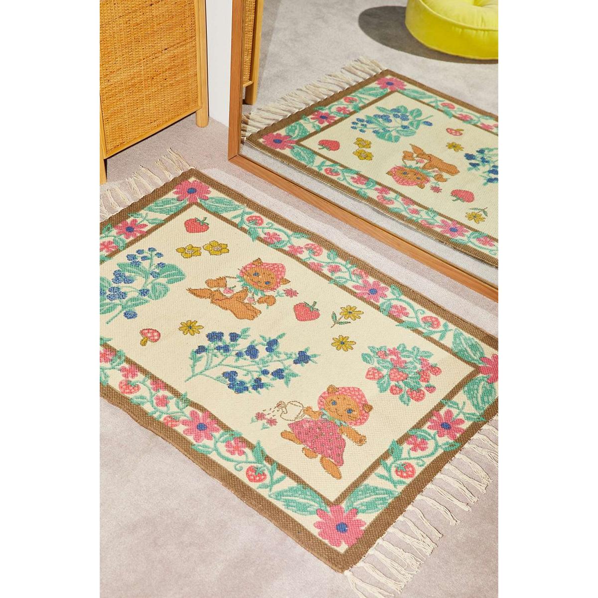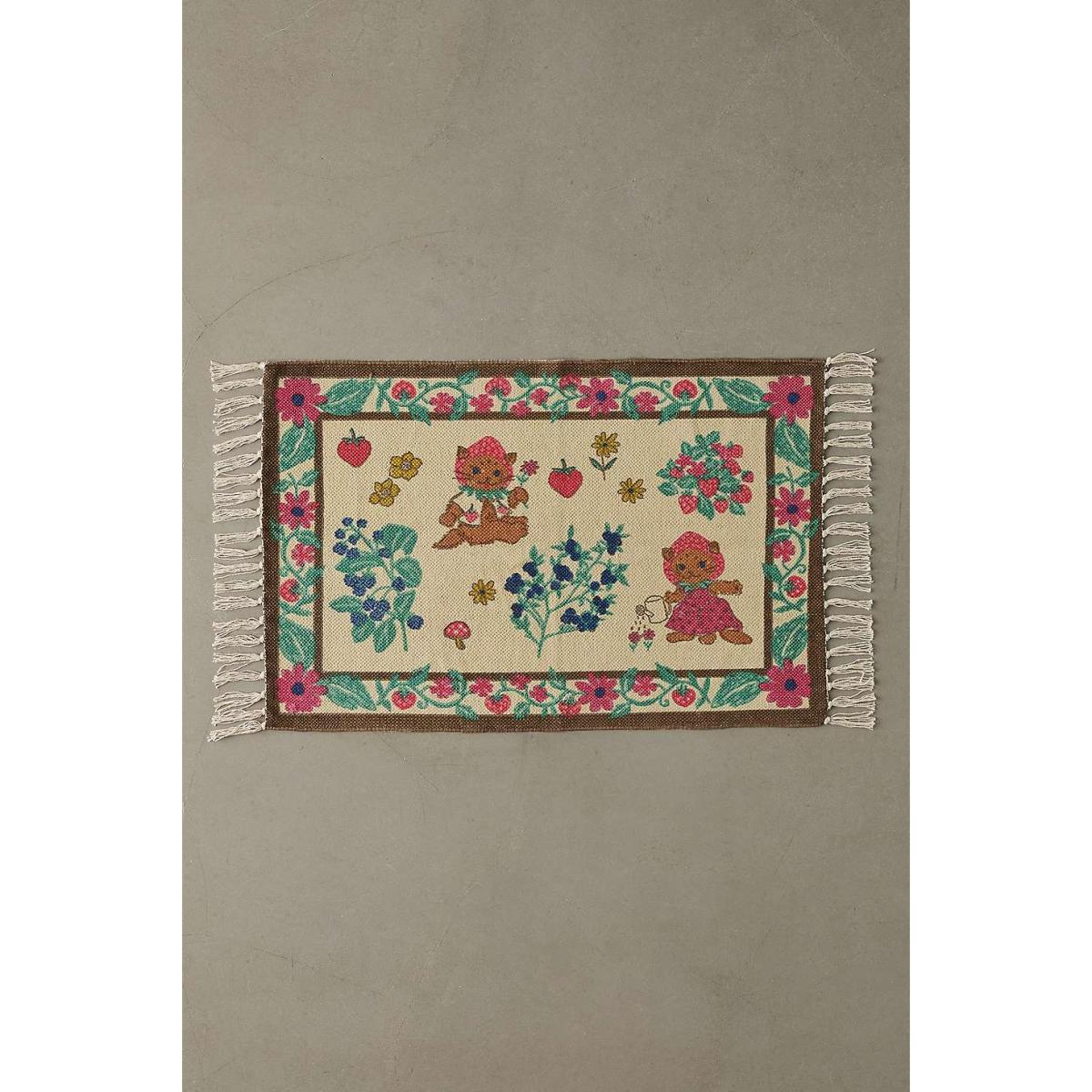 The most adorable rug with a sweet strawberry cat design. Crafted from cotton it's finished with a floral border and tasseled edges. **Content + Care** \- 100% Cotton \- Spot clean **Size** \- 61cm x 91.5cm (2ft x 3ft)