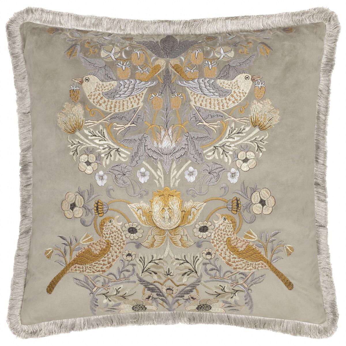 Dating back to 1883, Strawberry Thief is one of Morris & Co.'s most iconic designs. This interpretation in embroidery retains the same enchanting detail of the original, said to be inspired by the thrushes Morris found stealing fruit from his kitchen garden. Captivating, bold and beautiful, Strawberry Thief steals hearts and strawberries. The embroidered curtains, cushions and throws capture the beautiful symmetry of the original design.100% Polyester. Feather Rich pad filling (80% Feather 20% Hollowfibre Polyester)Embroidery on a matt velvet base, plain velvet reverse and cotton fringe edge. Dry Clean and Cool Iron Only.50cm x 50cm. This product will be dispatched by one of our trusted suppliers. You’ll be contacted by their selected courier about your delivery.