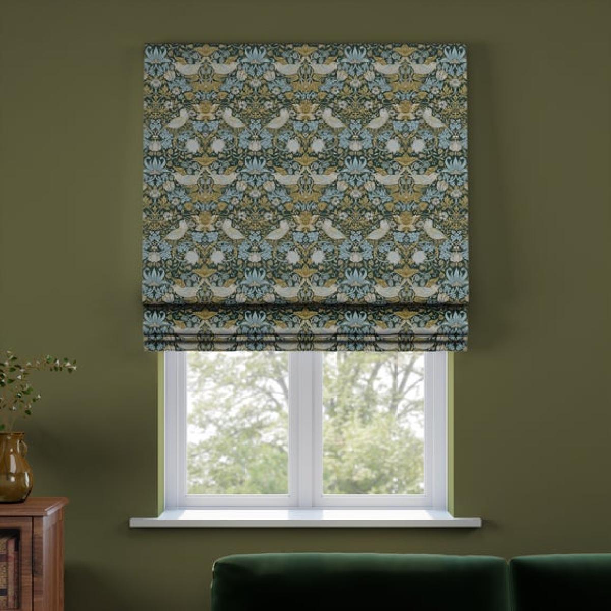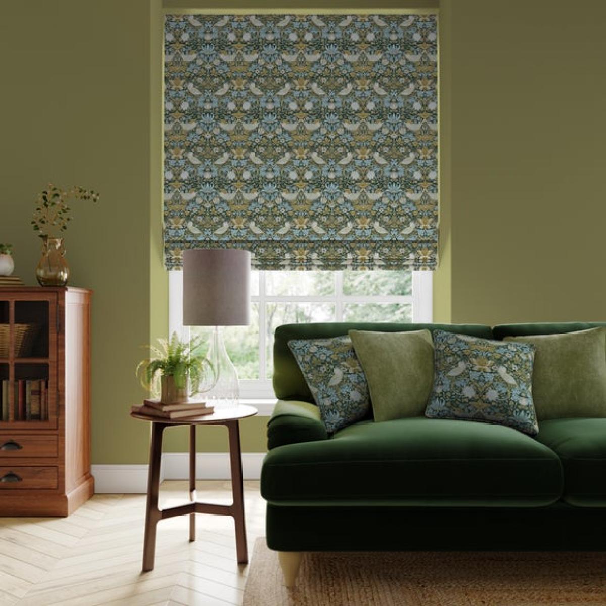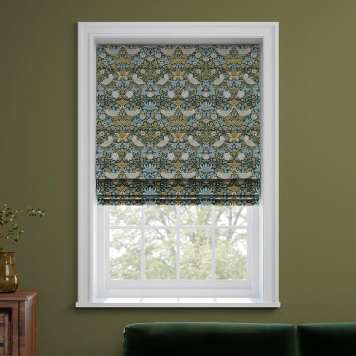 * Exclusive colourways to Dunelm * Choose from 3 linings * Can be installed inside or outside the recess * Pick a side for the operating chain * Made in the UK Perhaps William Morris’s most recognisable design, Strawberry Thief was inspired by the thrushes that crept under Morris’s strawberry nets in his garden at Kelmscott Manor, Oxfordshire. The original pattern took several days to print using hand-carved woodblocks to build up the different colours, and ‘Strawberry Thief’ was consequently one of Morris’s firm’s most expensive cottons. Whilst waiting to see the first piece printed, Morris endured sleepless nights in his lodgings at Merton Abbey. Designed in 1883, Strawberry Thief remains one of William Morris’s most popular and iconic designs. Pairing iconic William Morris patterns with excellent British manufacturing, our Made to Measure service brings you a selection of beautiful William Morris At Home designs, with exclusive colourways to Dunelm, allowing you to create a uniquely individual look in your home. Available in a range of linings, these roman blinds can be paired with matching Curtains or Made to Order Tiebacks and Cushion Covers to give your home a beautifully coordinated finish. Book an appointment with one of our expert consultants who will guide you through the process of creating your very own Made to Measure Roman Blinds. Please note: If your measured width is over 130cm your blinds may come with a fabric join to provide the full width required.