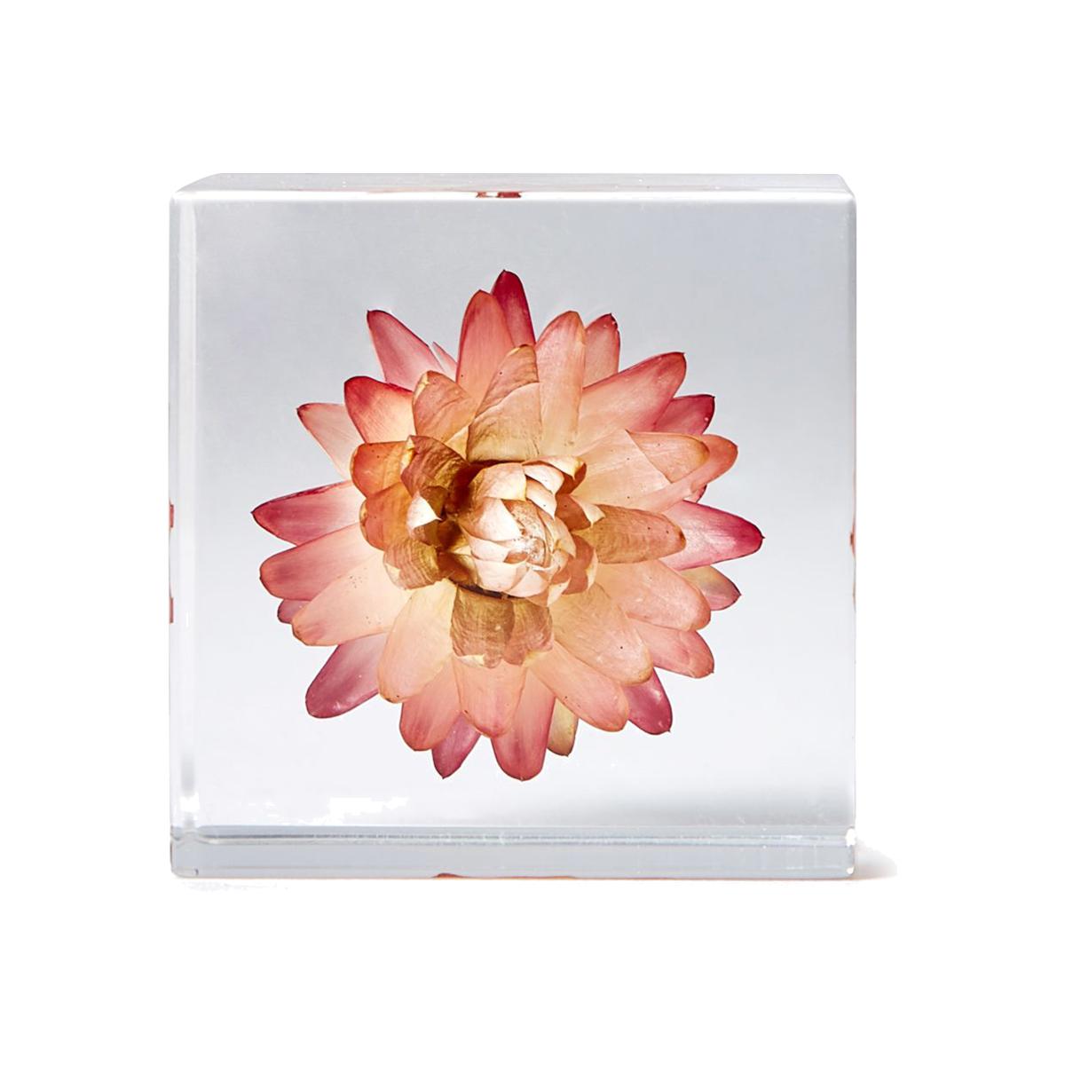 Bring the beauty of nature into your home with this elegant handcrafted Strawflower Cube from Usagi no Nedoko. Presenting a beautiful strawflower suspended in polyester resin, each one-of-a-kind object is handcrafted in Japan. The cube faultlessly showcases the beauty of the flower, allowing it to be admired from every angle. It makes for a unique alternative to the classic bouquet.