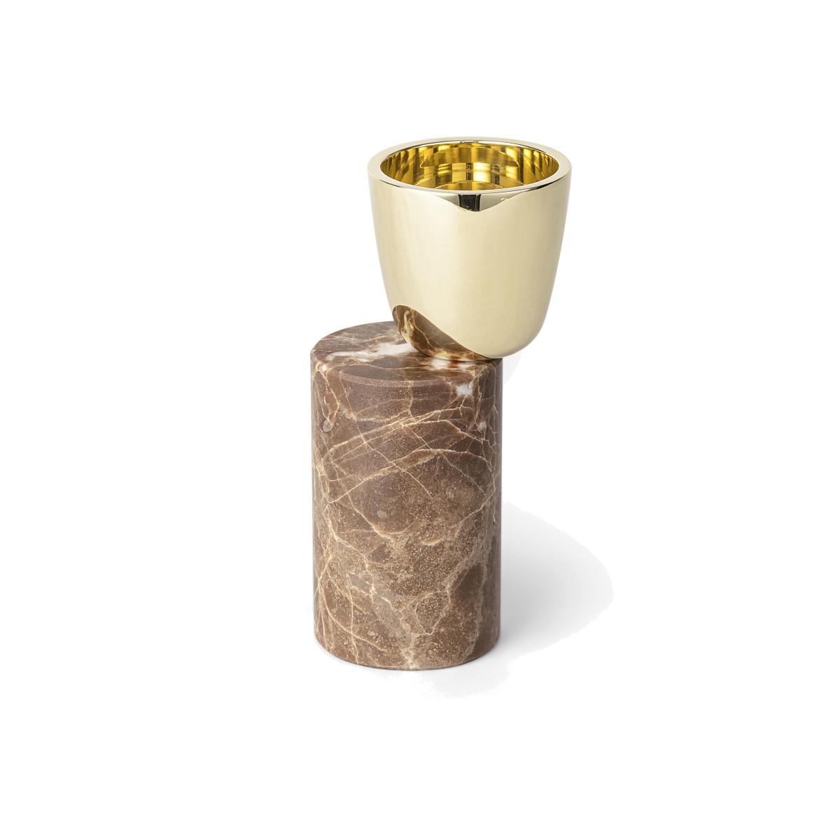 The Streamers candle holder A 7 cm from the Swedish brand Skultuna was originally designed by Luca Nichetto. The candle holder offers an unexpected yet effortlessly striking mixture of asymmetry and stability. The circular holder is balanced atop the edge of a solid marble cylinder to create an arresting design of both balance and harmony. Combine this elegant candle holder alongside various other pieces from the Streamers collection to create an exciting interior display on the windowsill or side table.