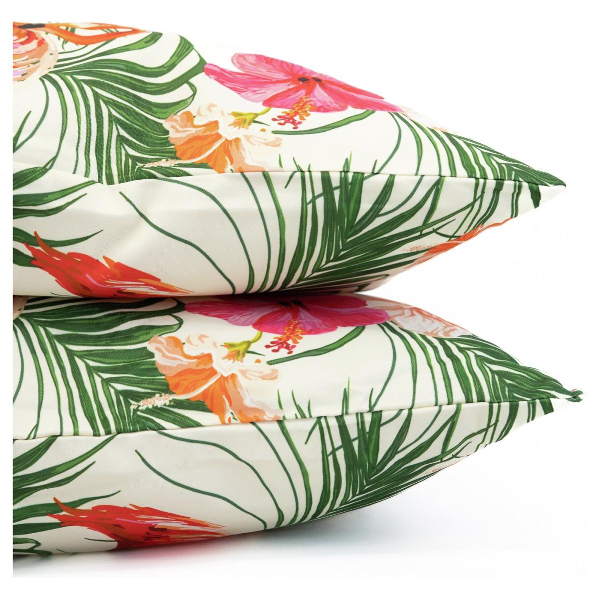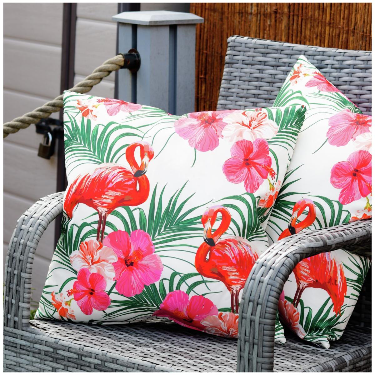 These vibrantly printed outdoor cushions will definitely brighten up your garden space. They're made from a water resistant and durable polyester, so you don't have to worry about them if you have accidentally left them outside. That said, these cushions can also be used inside your home, your conservatory and when you're out on a caravan or motorhome holiday. Removable covers. Machine washable covers. 100% Polyester. 100% Polyester filling. Size L43, W15, D43cm. Water resistant. Store inside when not in use. Fade resistant.