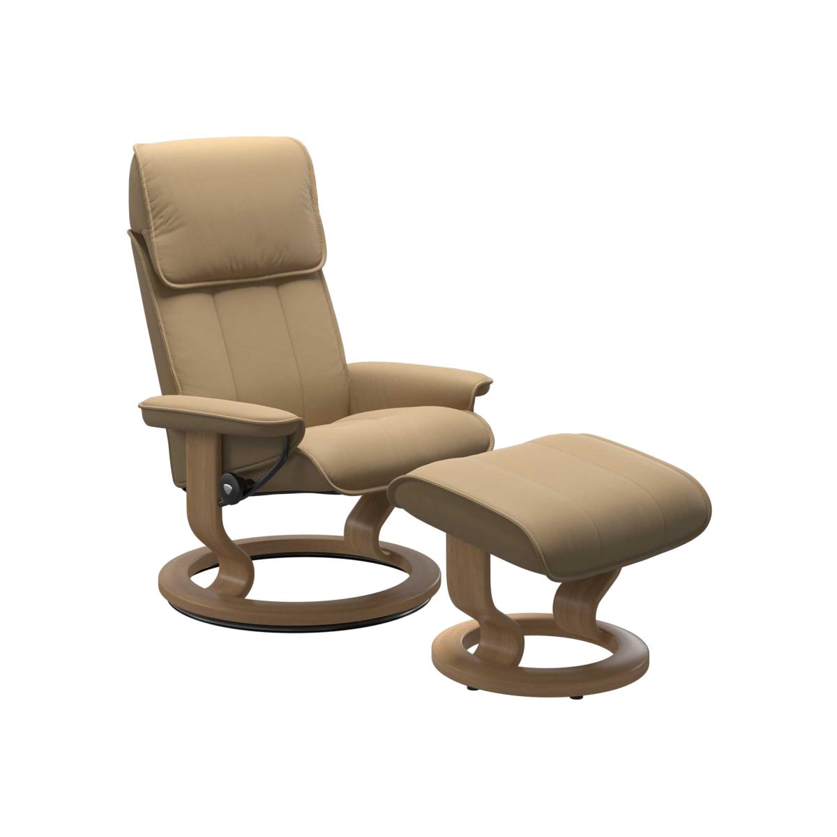 Stressless Admiral Medium Classic Chair & Stool, Neutral Leather | Stressless