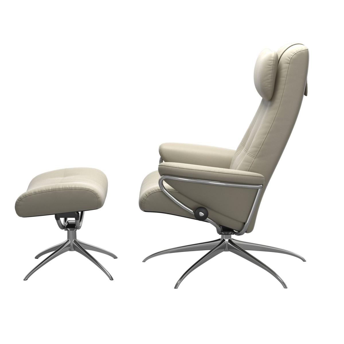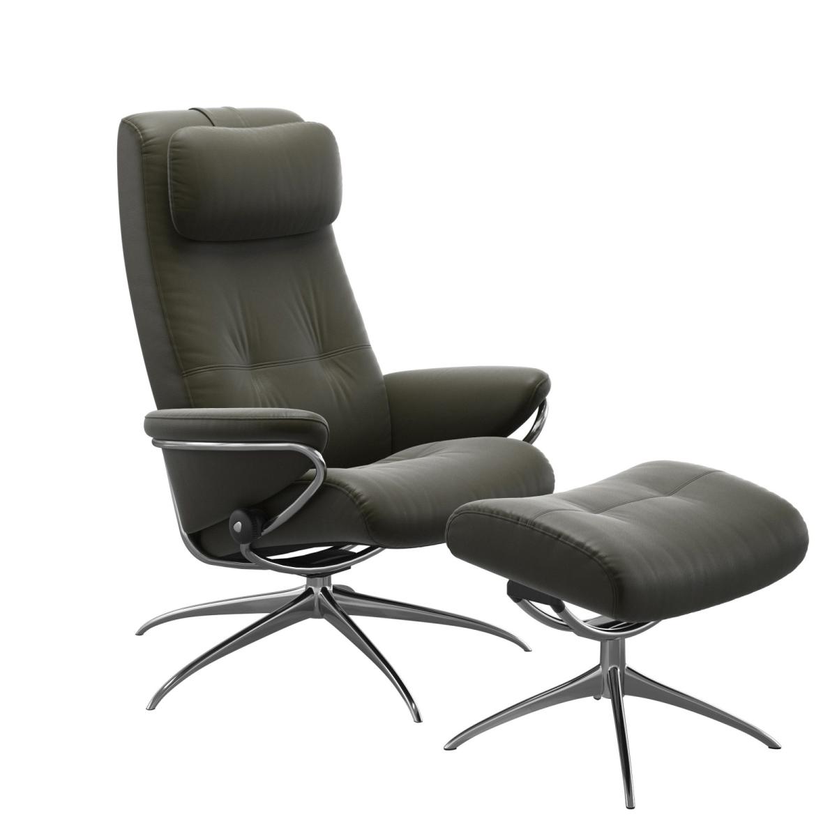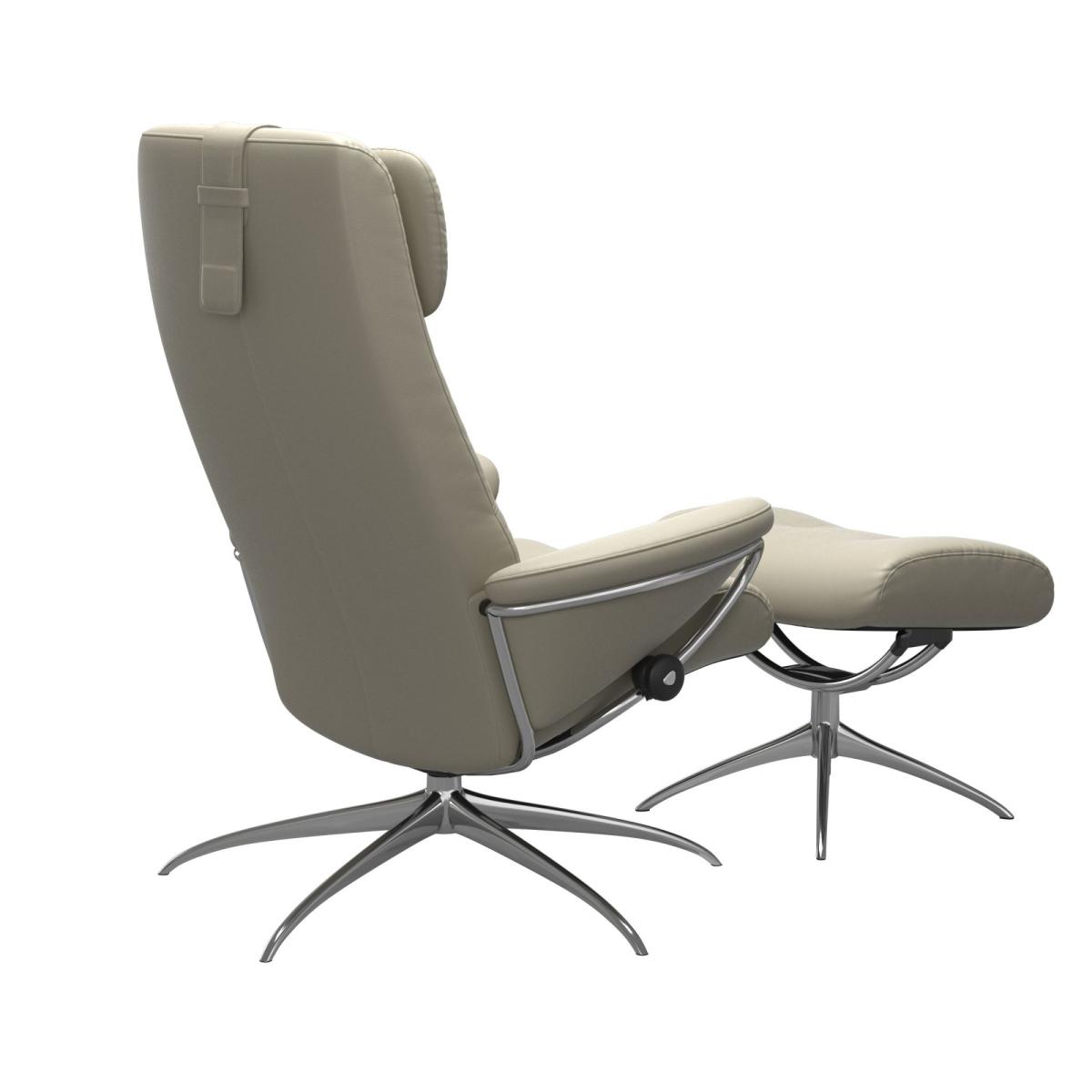 The Stressless® Berlin recliner has a retro vibe that has withstood the test of time for decades. While the sleek outline gives it a modern edge, on the inside you will find all the classic Stressless® comfort technology. This model comes with a high back and footstool so you can put your feet up and relax, and the star base offers both support and style which is always a winning combination. Choose from different leather grades and colours to make this recliner and footstool truly your own!.