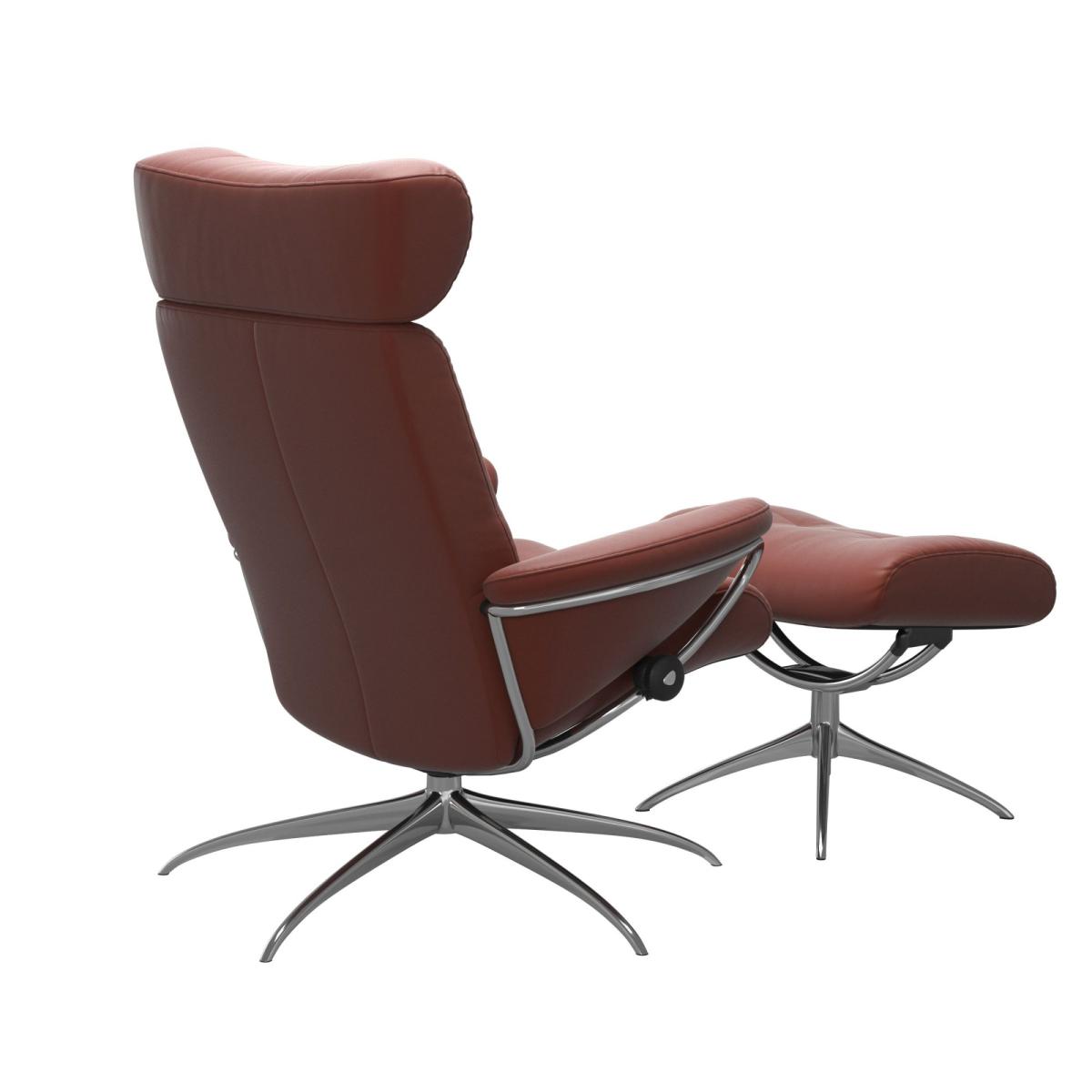The Stressless® Berlin recliner has a retro vibe that has withstood the test of time for decades. While the sleek outline gives it a modern edge, on the inside you will find all the classic Stressless® comfort technology. This model comes with a height adjustable headrest and footstool so you can put your feet up and relax, and the star base offers both support and style which is always a winning combination. Choose from different leather grades and colours to make this recliner and footstool truly your own!.