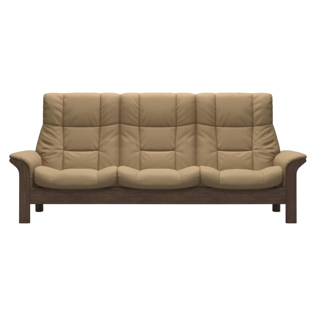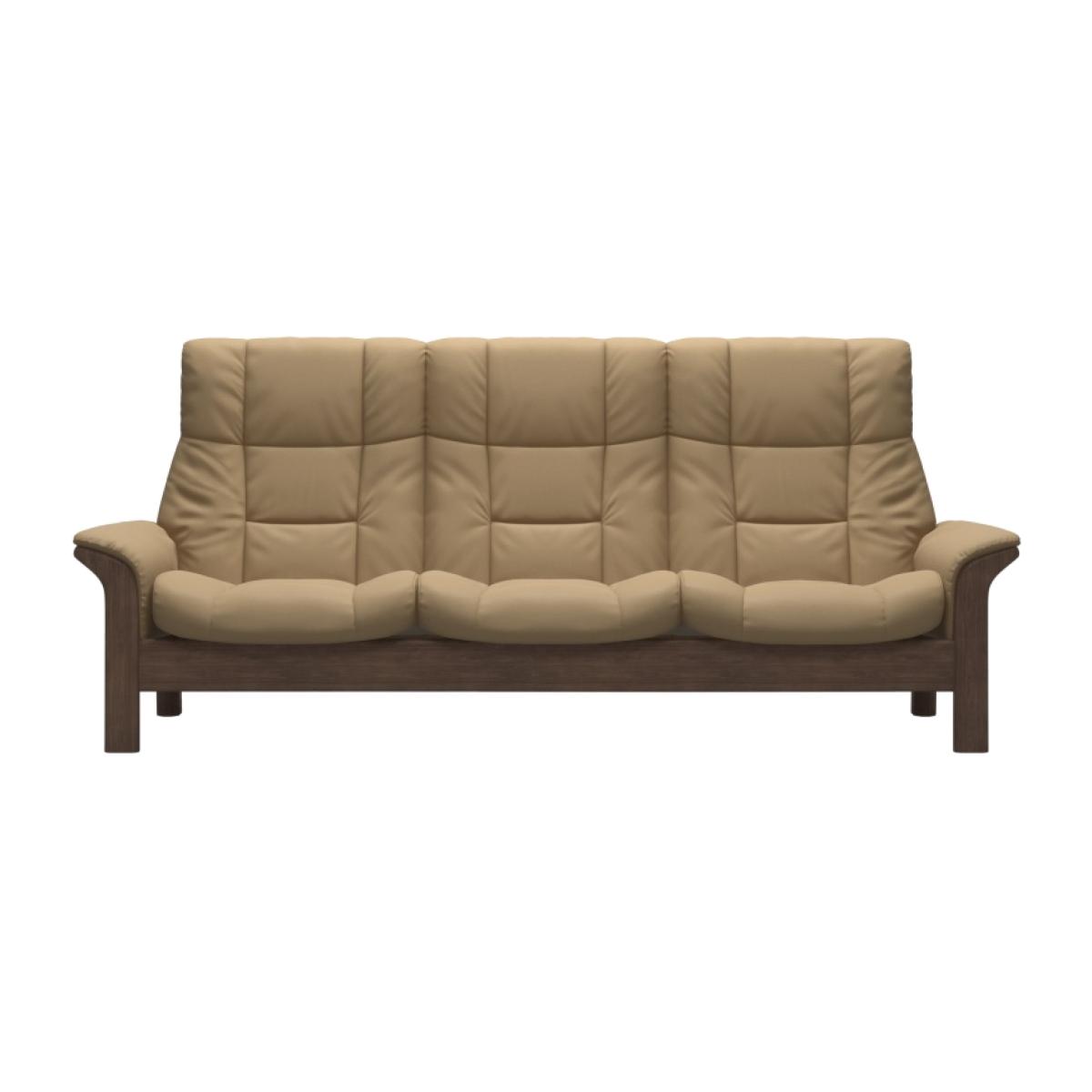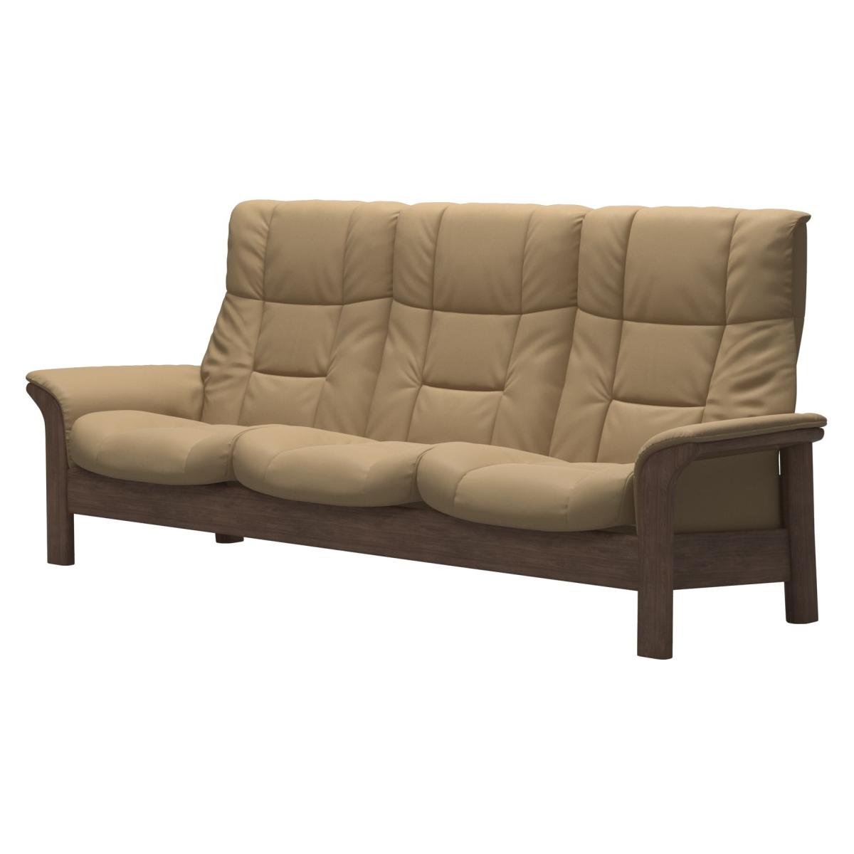Gentle curves, padded arms and a supple seat, this sofa is as sleek as the name implies. The Stressless Buckingham High Back 3 Seater Sofa offers an invitation to pure relaxation in a classic design with details in wood. Individually reclining seats and a high back, which ensures maximum support for the entire body. Shown here in Paloma Sand leather with a Walnut stain wood colour. Features: Plus™-system - The unique Plus™ system always gives you maximum comfort and support for your neck and lumbar region, regardless of whether you’re sitting or lying down. The sleep function is activated with a simple hand movement, making your moments of comfort even better. Sleep tight. Glide™-system - Set the friction of the Stressless wheels once and adjust your sitting position simply by using your body weight. 10 Year Guarantee on fabrication faults on internal mechanism Comfortably seats 3 people Individually reclining seats High back for supportive seat 3 Seater Sofa Dimensions: Width: 230.0 cm Depth: 81.0 cm Height: 103.0 cm Seat height: 43.0 cm Seat depth: 53.0 cm All screens vary in colour reproduction and whilst every effort has been made to display the colour as accurately as possible it is for guidance only.