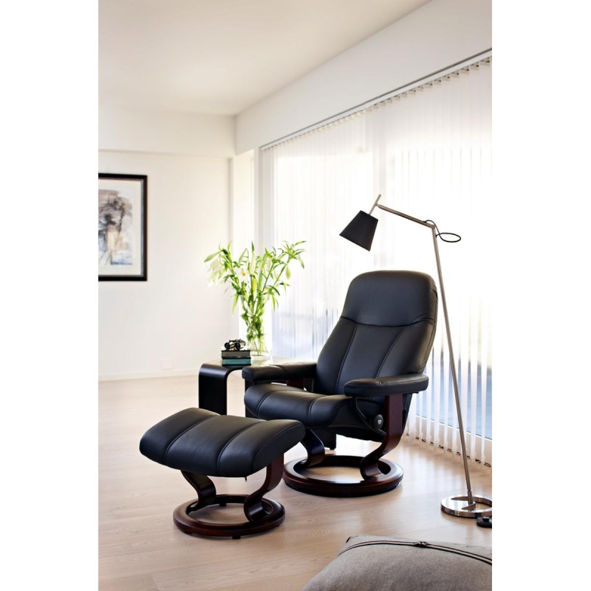 Please note that this product does NOT come with the footstool included. The Stressless Consul Class Chair offers a streamlined and stylish appearance, with a visible seam detail to add that extra sophistication. Swivel the base allows for a complete 360 rotation, allowing you to adjust your direction with ease. Stressless® Plus™ the revolutionary signature feature of the Stressless ranges, this design system means your eye line remains consistent as you recline, making it easier to still watch TV or read whilst fully sat back. Sleep Function The headrest can lay flat for a convenient position for those afternoon naps. Stressless® glide system automatically adjusts to your bodies weight, unlike other pesky recliners that you fight with to recline, the Stressless Consul won't retain its upright position until you want it to. Technical Specification Footstool not included Small w/Classic Base: h:94.0cm d:70.0cm w:70.0cm (Seat Height: 38.0cm) Medium w/Classic Base: h:100.0cm d:71.0cm w:76.0cm (Seat Height: 40.0cm) Large w/Classic Base: h:100.0cm d:77.0cm w:77.0cm (Seat Height: 42.0cm) 360 degree swivel action Available in a choice of leather and fabric colours 10 Year Guarantee on fabrication faults on internal mechanism Equipped with the patented Glide system