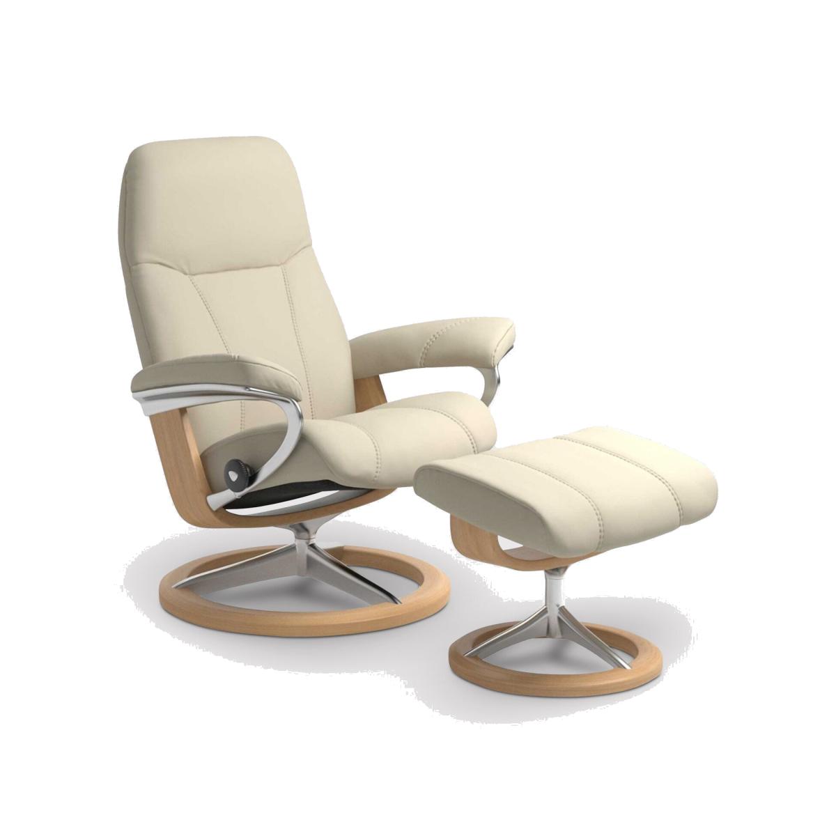 Stressless Consul Small Recliner Chair & Footstool, Neutral Leather | Barker & Stonehouse
