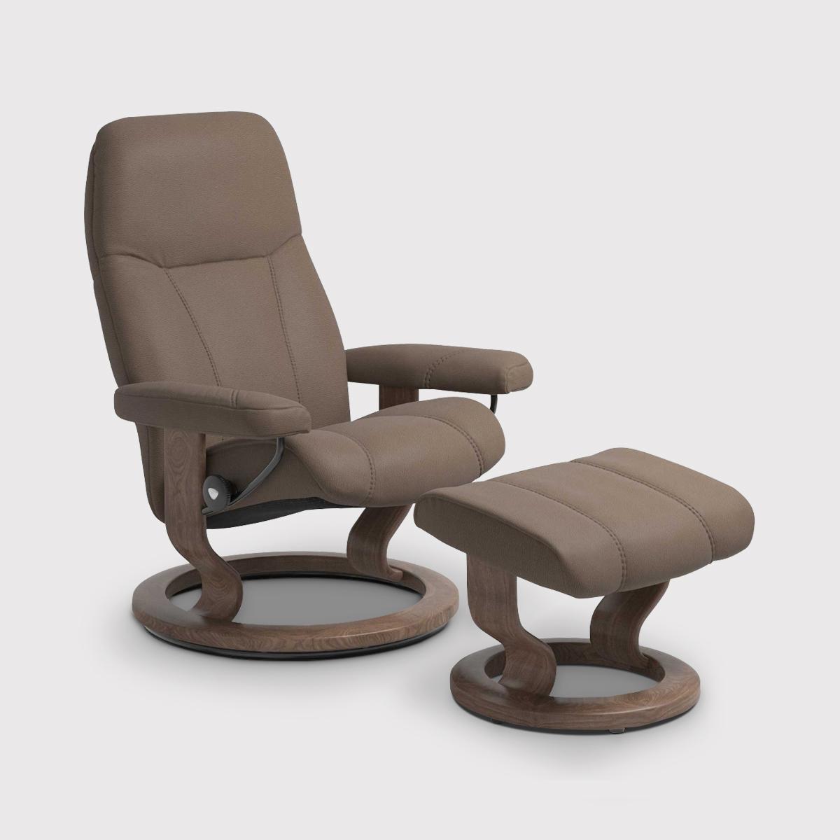 Stressless Consul Small Recliner Chair & Footstool Quickship, Brown Leather | Barker & Stonehouse