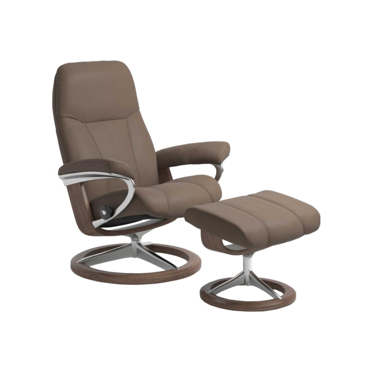Design. Stressless Consul Small Signature Chair and Stool, Batick Mole & Walnut.