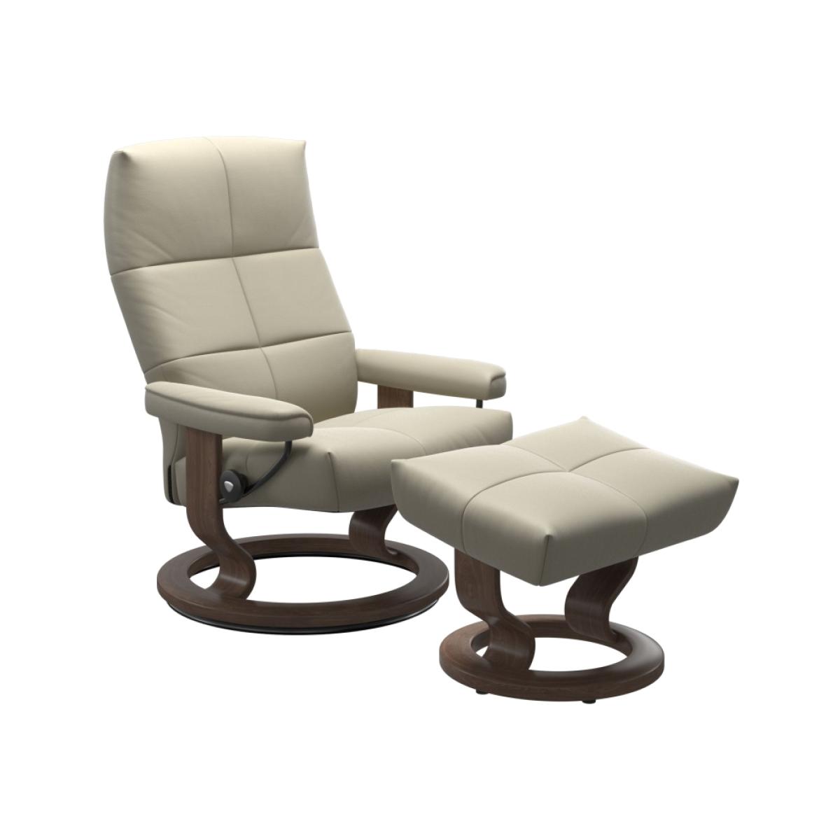 Product Description The Stressless David is a versatile recliner with a lot of character:Soft, yet neat, with a distinctive pattern in the back that hints to traditional origami techniques. The combination of Flexo-springs, Comfort. Zones and multiple layers of soft foam is your guarantee for the ultimate comfort experience. The choice of bases lets you adapt the recliner to both modern and traditional interiors. Technical Specification Plus™-system- Finally, a moment to yourself to recharge your batteries. Watch a film, read a good book or just wind down. Lean back and notice how the chair follows your movements. The unique Plus™ system always gives you maximum comfort and support for your neck and lumbar region, regardless of whether you’re sitting or lying down. The sleep function is activated with a simple hand movement, making your moments of comfort even better. Sleep tight. Glide™-system- Set the friction of the Stressless wheels once and adjust your sitting position simply by using your body weight. Small: h: 98cm d: 72cm w: 71cm (Seat Height: 40cm) Medium: h: 101cm d: 73cm w: 75cm (Seat Height: 41cm) Large: h: 102cm d: 76cm w: 84cm (Seat Height: 44cm)