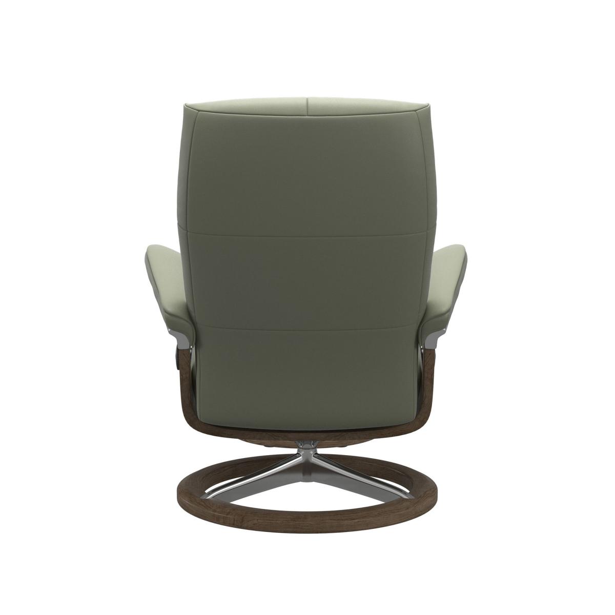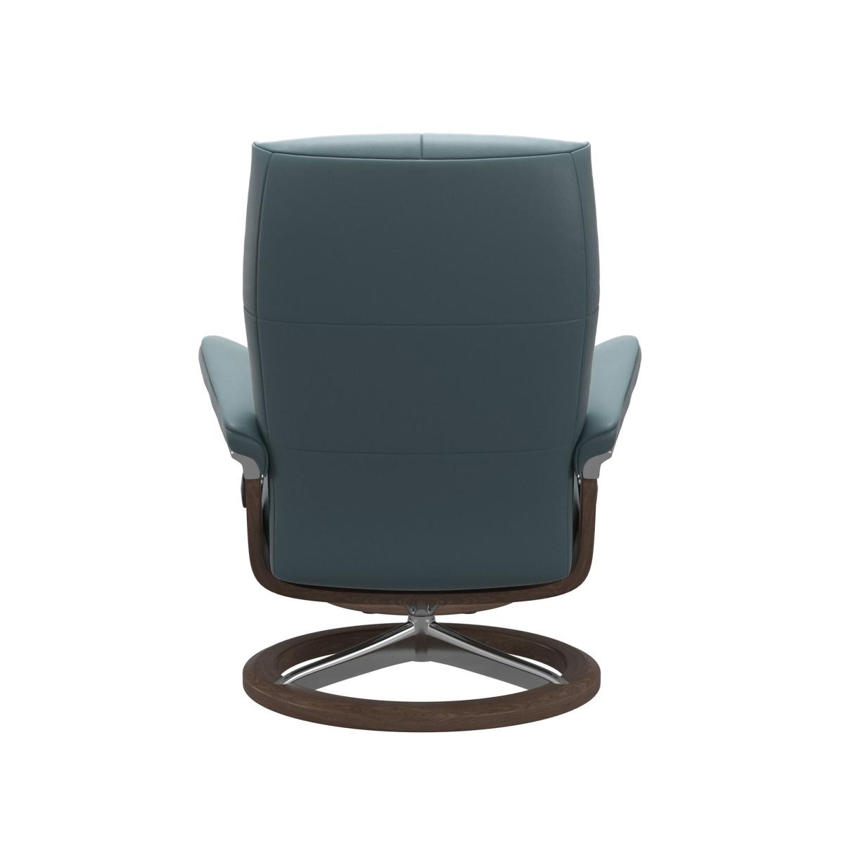 Relax in style with the Stressless David Medium Signature Leather Recliner Armchair and Footstool. Combining Comfort. Zones, Flexo-springs, and plush layered foam, it provides tailored support and luxurious comfort. The distinctive origami-inspired back design adds sophistication to any room. With BalanceAdapt, your sitting angle automatically adjusts to movements, while the Plus system supports your neck and lumbar area perfectly. The Glide system allows effortless repositioning, and the adaptable base suits modern and classic interiors alike. Perfect for movie nights, reading, or quiet moments, the Medium David recliner creates a serene and stylish sanctuary for everyday comfort.