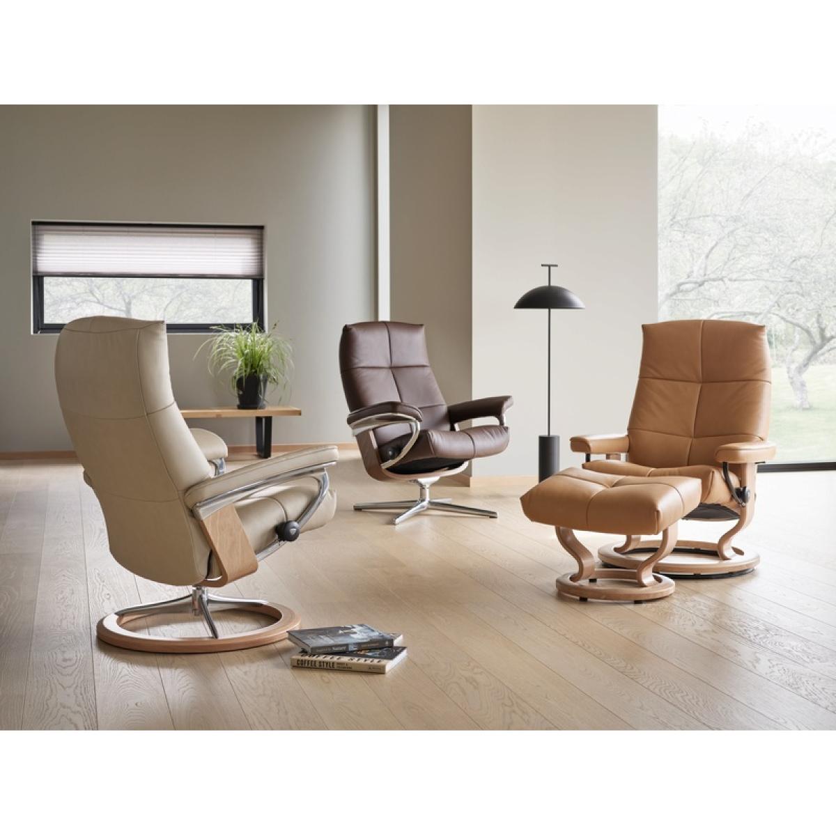 Stressless® David is a versatile recliner with a lot of character:Soft, yet neat, with a distinctive pattern in the back that hints to traditional origami techniques. The combination of Flexo-springs, Comfort. Zones™ and multiple layers of soft foam is your guarantee for the ultimate comfort experience. The choice of bases lets you adapt the recliner to both modern and traditional interiors. Technical Specification Plus™-system- Finally, a moment to yourself to recharge your batteries. Watch a film, read a good book or just wind down. Lean back and notice how the chair follows your movements. The unique Plus™ system always gives you maximum comfort and support for your neck and lumbar region, regardless of whether you’re sitting or lying down. The sleep function is activated with a simple hand movement, making your moments of comfort even better. Sleep tight. Power- Add even more luxury with Stressless® Power - our innovative and motorised comfort function. Find your ideal position in total comfort with a simple touch of the neatly concealed buttons. Medium: h: 101.0cm d: 77.0cm w: 75.0cm (Seat Height: 46.0cm) Large: h: 102.0cm d: 77.0cm w: 84.0cm (Seat Height: 46.0cm)