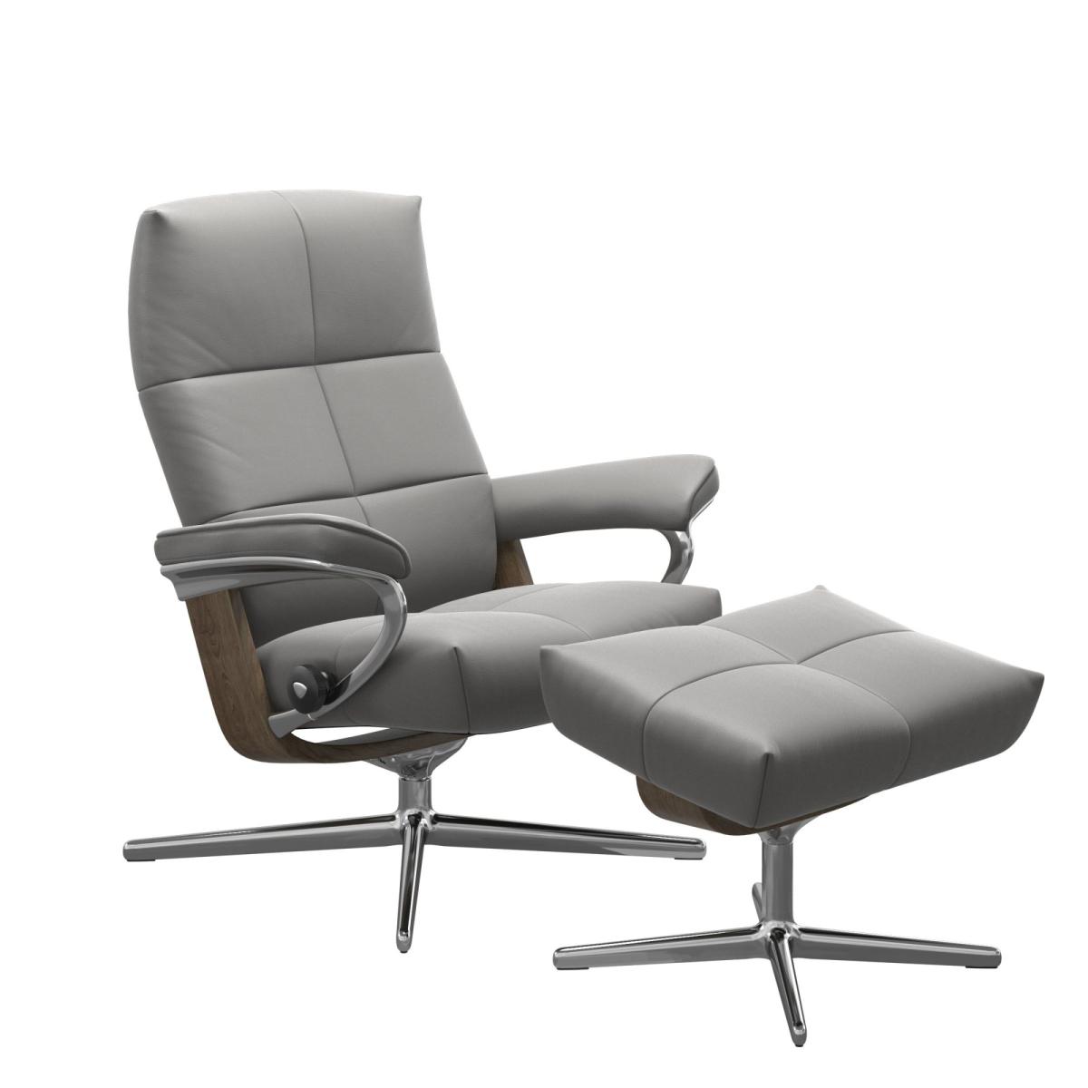 The Stressless® David Recliner offers a lot of character:Soft, yet neat, with a distinctive pattern in the back that hints to traditional origami techniques. The combination of Flexo-springs, Comfort. Zones™ and multiple layers of soft foam is your guarantee for the ultimate comfort experience, along with the matching footstool so you can put your feet up in style. The cross base and choice of leather grades and colours lets you adapt the recliner to both modern and traditional interiors.