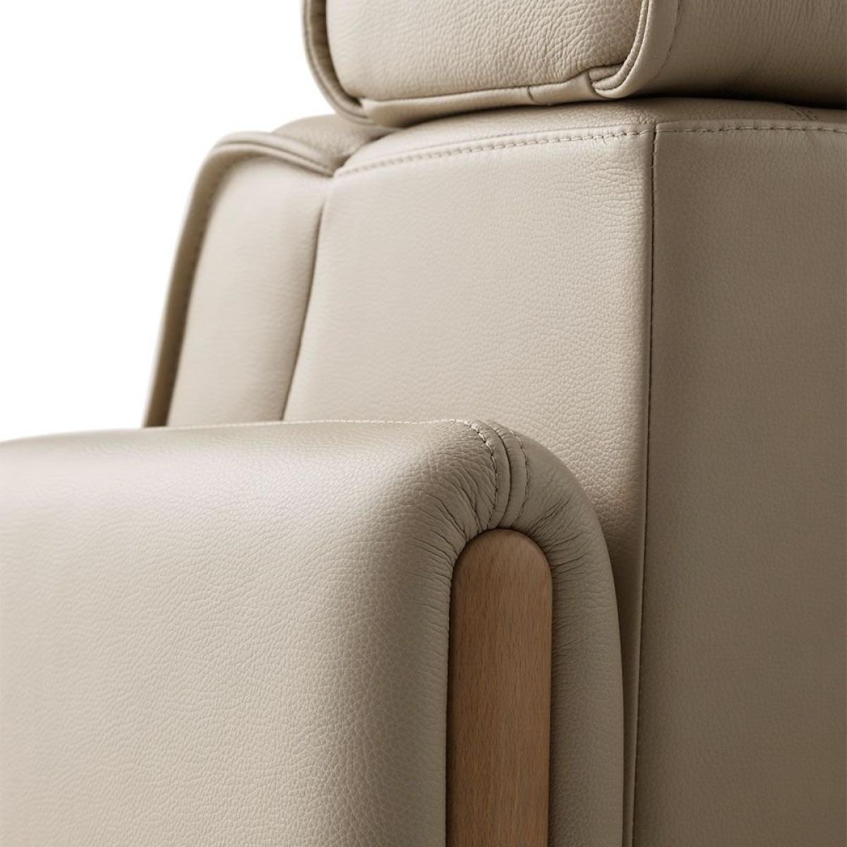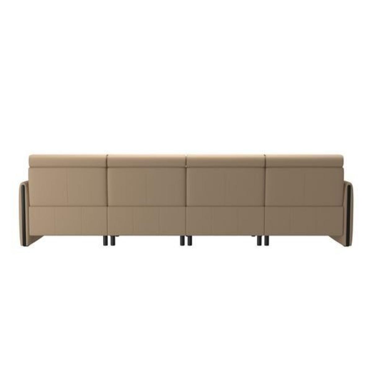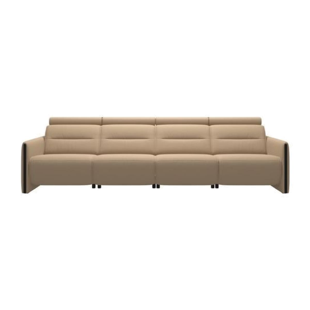 Sleek lines with a modern look give Stressless Emily an embracing appearance. The contemporary design of the soft enveloping cushions invite you to sit down and relax. All seat modules come with an adjustable headrest. Either with fixed seat-back or fitted with motors for personal adjustment of back and leg support. Choose between either steel or wood details on the armrest. The recliners Stressless Tokyo and Stressless View both couples up nicely with the Stressless Emily sofa.
